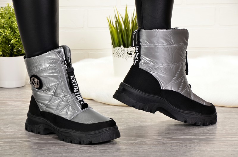 Ex-tim MB2219-3K Ботинки женские серебр-чер нейлон+иск велюр, подклад иск мех