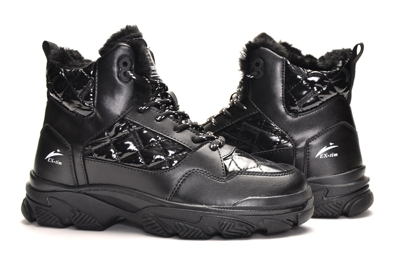 Ex-tim MB2222-1К Ботинки женские чер нейлон+иск кожа, подклад иск мех
