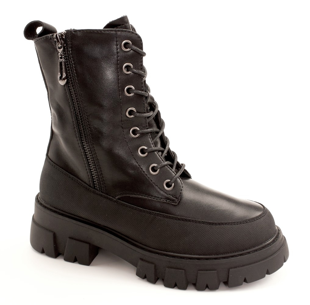 PLPS 2905-1K Ботинки женские чер нат (прессов) кожа, подклад нат шерсть