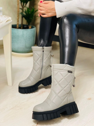Fashion T-B17-2Z Полусапожки женские бел нейлон+иск кожа, подклад иск мех
