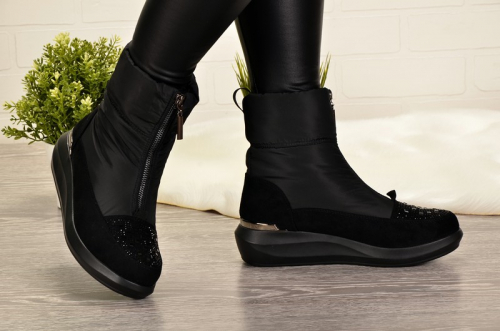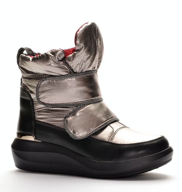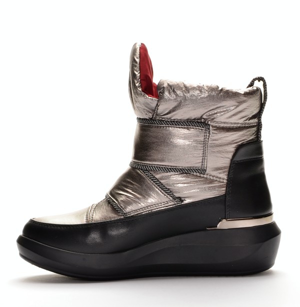 Loris Bottega LB-104 Ботинки женские серебр-чер нейлон+иск кожа, подклад иск мех