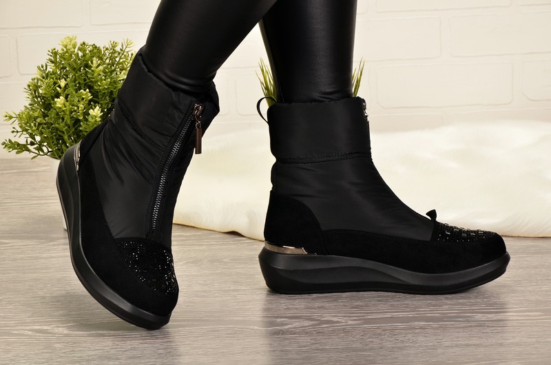 Loris Bottega LB-203 Ботинки женские чер нейлон+иск велюр, подклад иск мех