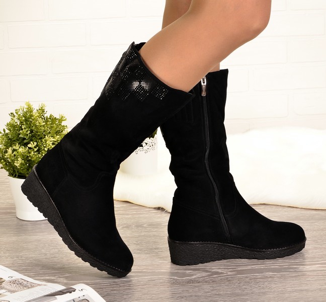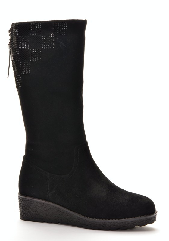 Mira Tini F510F-44M-017P-МП/Z Сапоги женские чер нат замша, подклад нат мех (по всей длине модели), увеличенная полнота голенища
