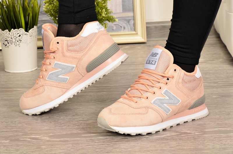 Sport + NB RB35-5 Кр­оссовки персик замша, подклад комби мех (нат+иск)
