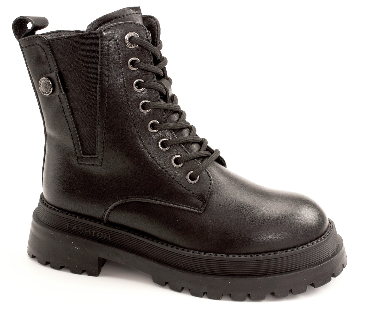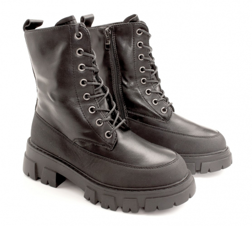 PLPS 2505-1 Ботинки женские чер нат (прессов) кожа, подклад нат шерсть