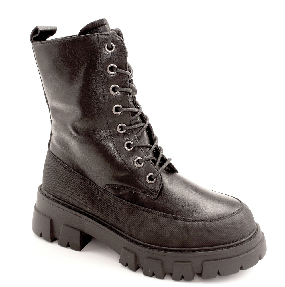 PLPS 2902-1-МП/Z Ботинки женские чер нат (прессов) кожа, подклад нат шерсть