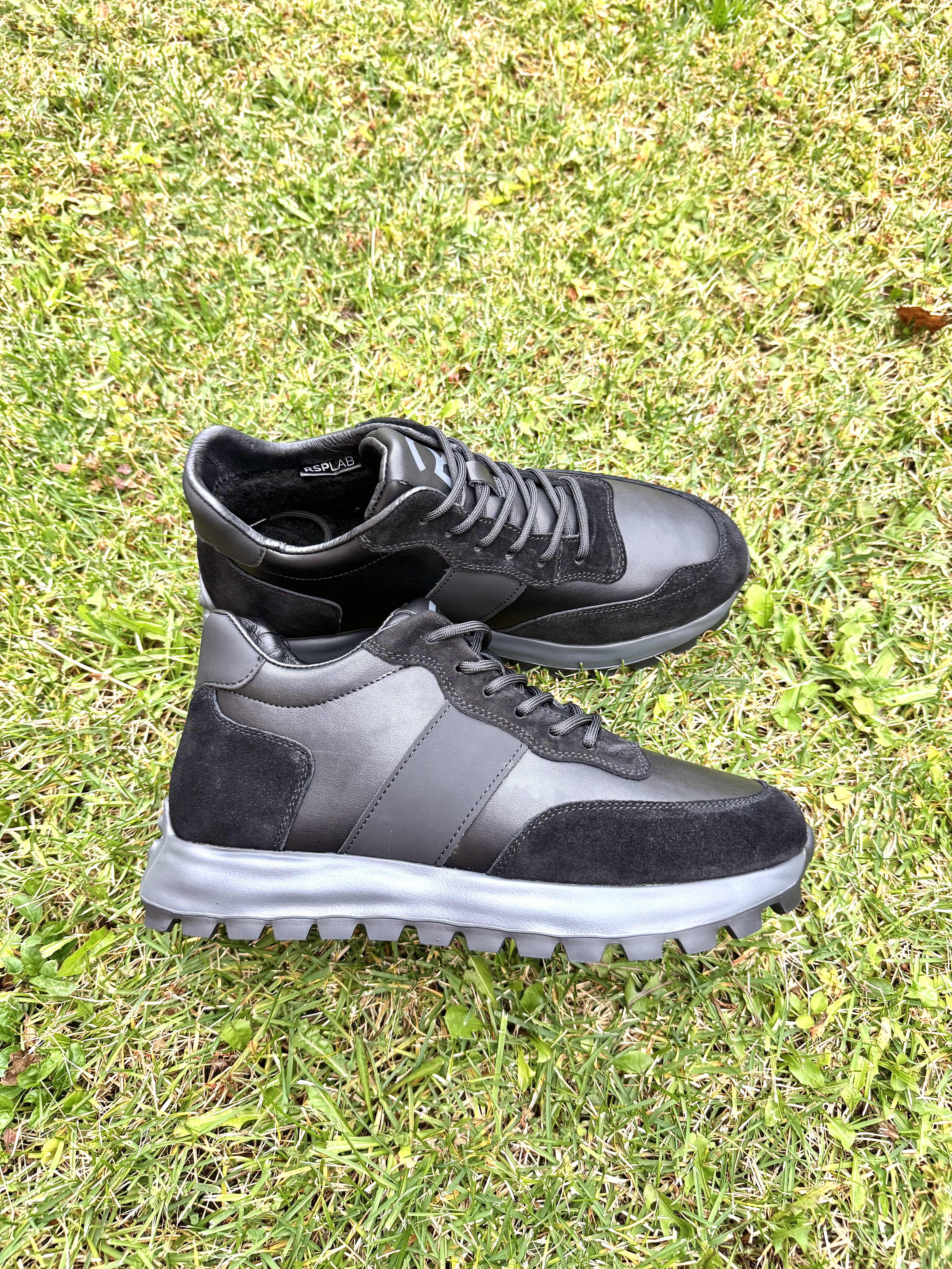 Кроссовки муж черн кож-велюр ЗИМА на нат шерсти