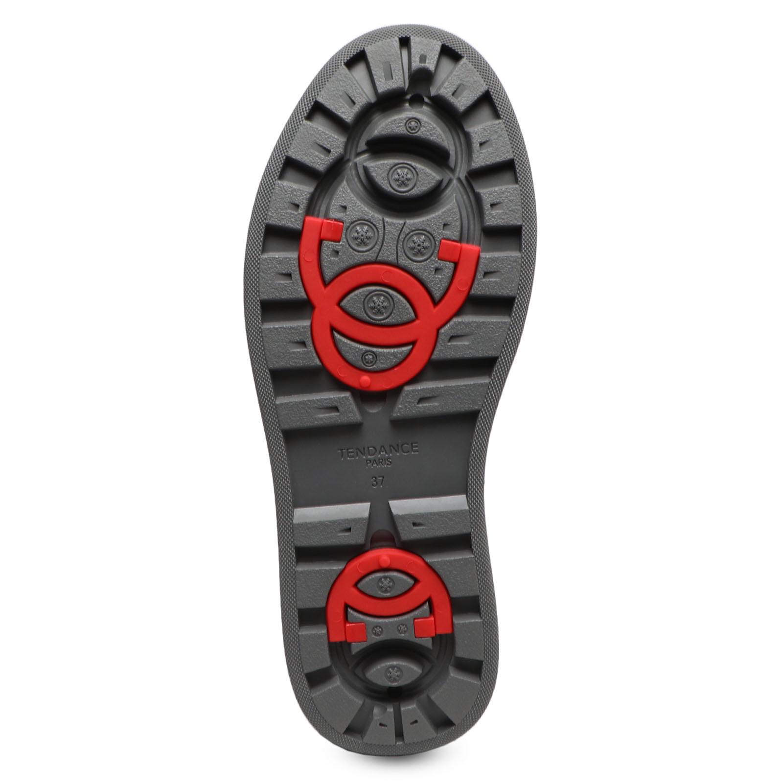 Подошва этой модели имеет встроенные шипы, которые делают ее нескользкой. Шипы вцепляются в поверхность, позволяя вам чувствовать себя уверенно на утрамбованном снегу и обледенелых тротуарах. Шипы расположены под носком и пяткой – теми участками стопы, которыми вы отталкиваетесь при ходьбе. Шипы можно активировать по необходимости: для этого в комплекте есть ключ. Со спрятанными шипами подошва становится обычной, вы сможете ходить по ламинату и линолеуму без риска их поцарапать. Встроенные шипы не выступают за подошву, поэтому не портят дизайн обуви и незаметны для окружающих, в отличие от съемных накладок.