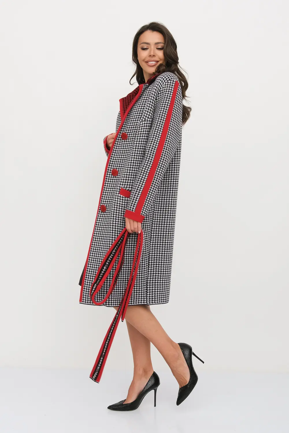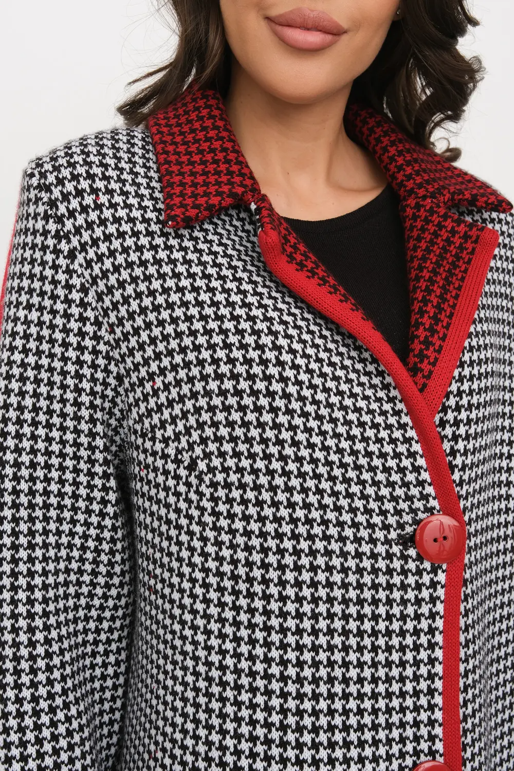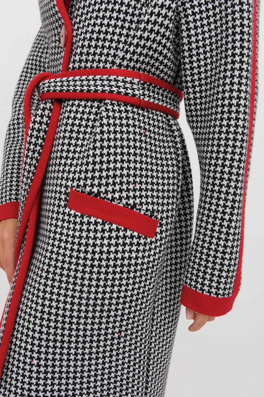 Кардиган вывязан 3х цветным жаккардом, в составе пряжи – шерсть. Яркая, классическая и, в тоже время. современная клетка не оставит Вас не замеченной. Модель кардигана удобная и комфортная, согреет Вас в прохладный день. черно-красный
