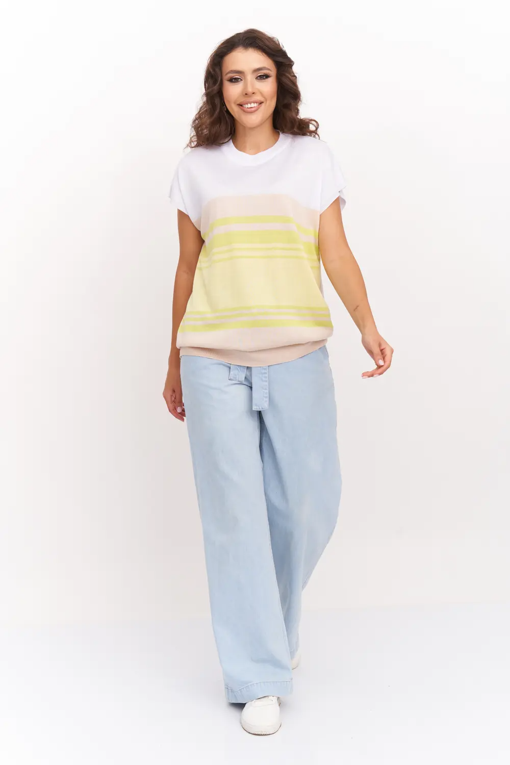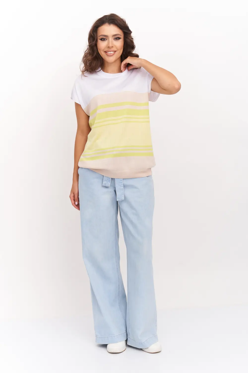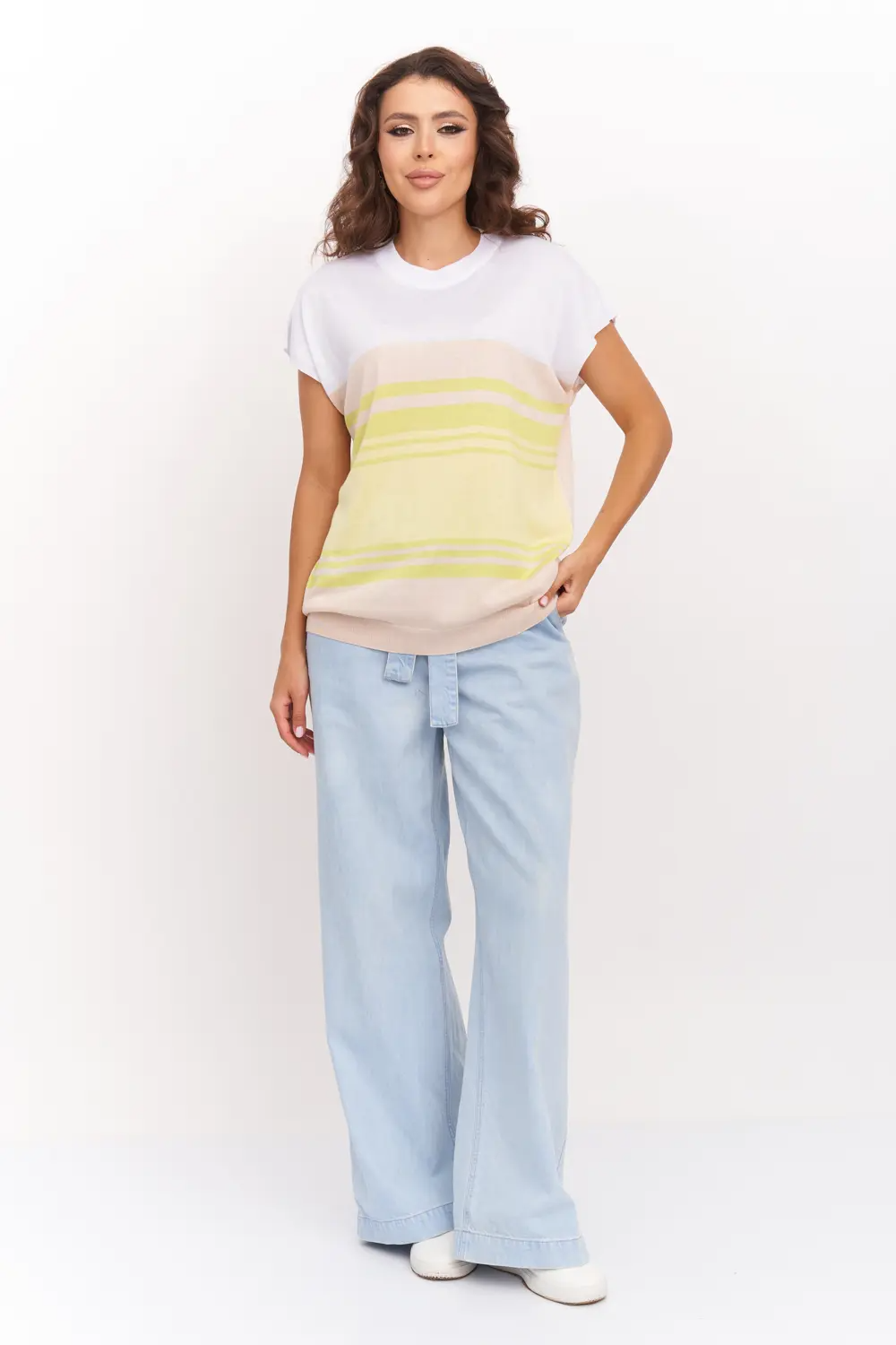 Легкий трикотажный джемпер со спущеной линией плеча и круглой горловиной. Выполнен из пряжи, в составе которой 50% вискозы, что позволяет носить его как базовую вещь летом, либо весной и осенью под пиджак. В джемпере будет Вам комфортно на прогулках в теплое время года. Джемпер прямого силуэта подойдет для любого типа фигуры и составит оригинальный, модный и женственный образ абсолютно с любым низом: юбка, брюки, джинсы. бежевый