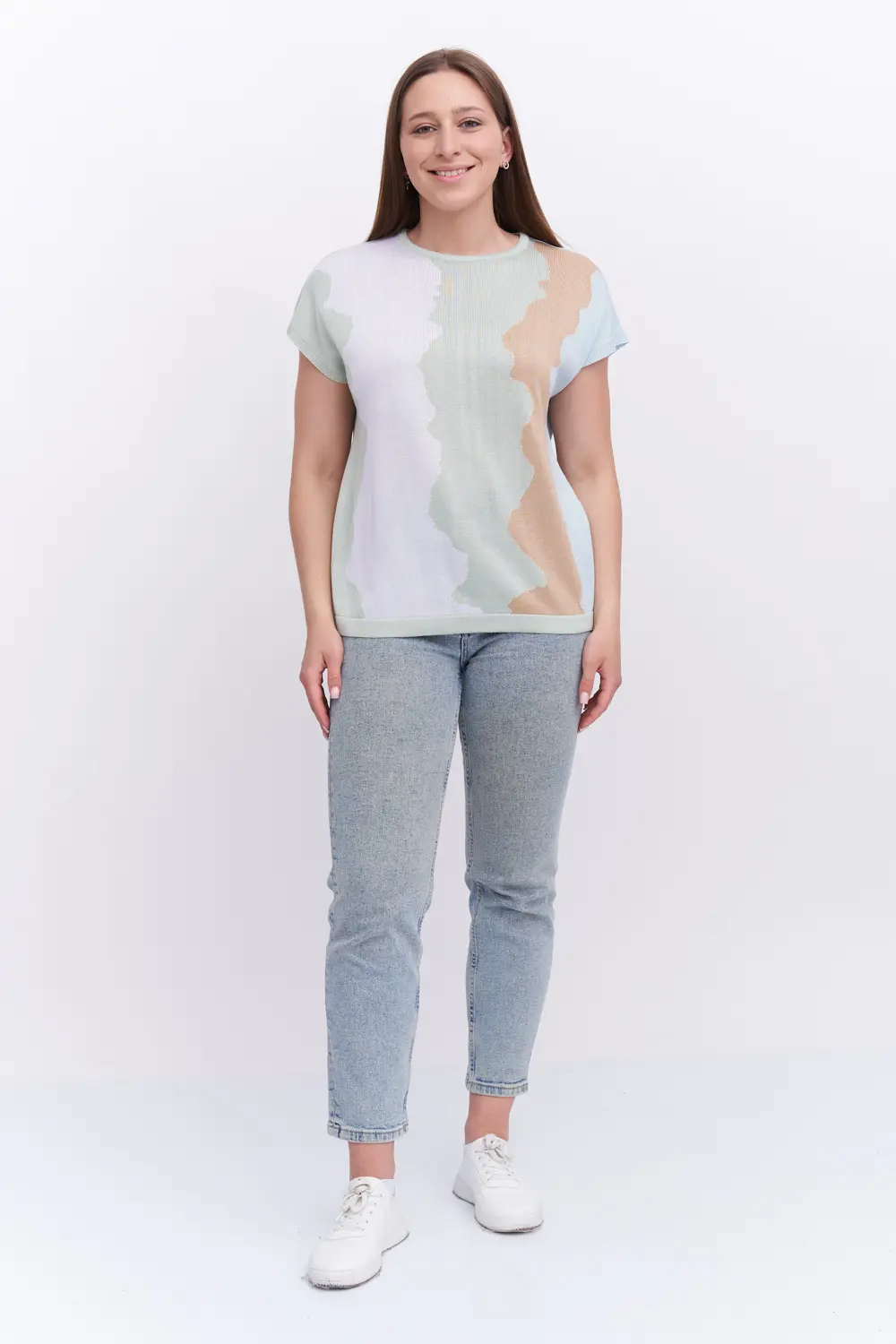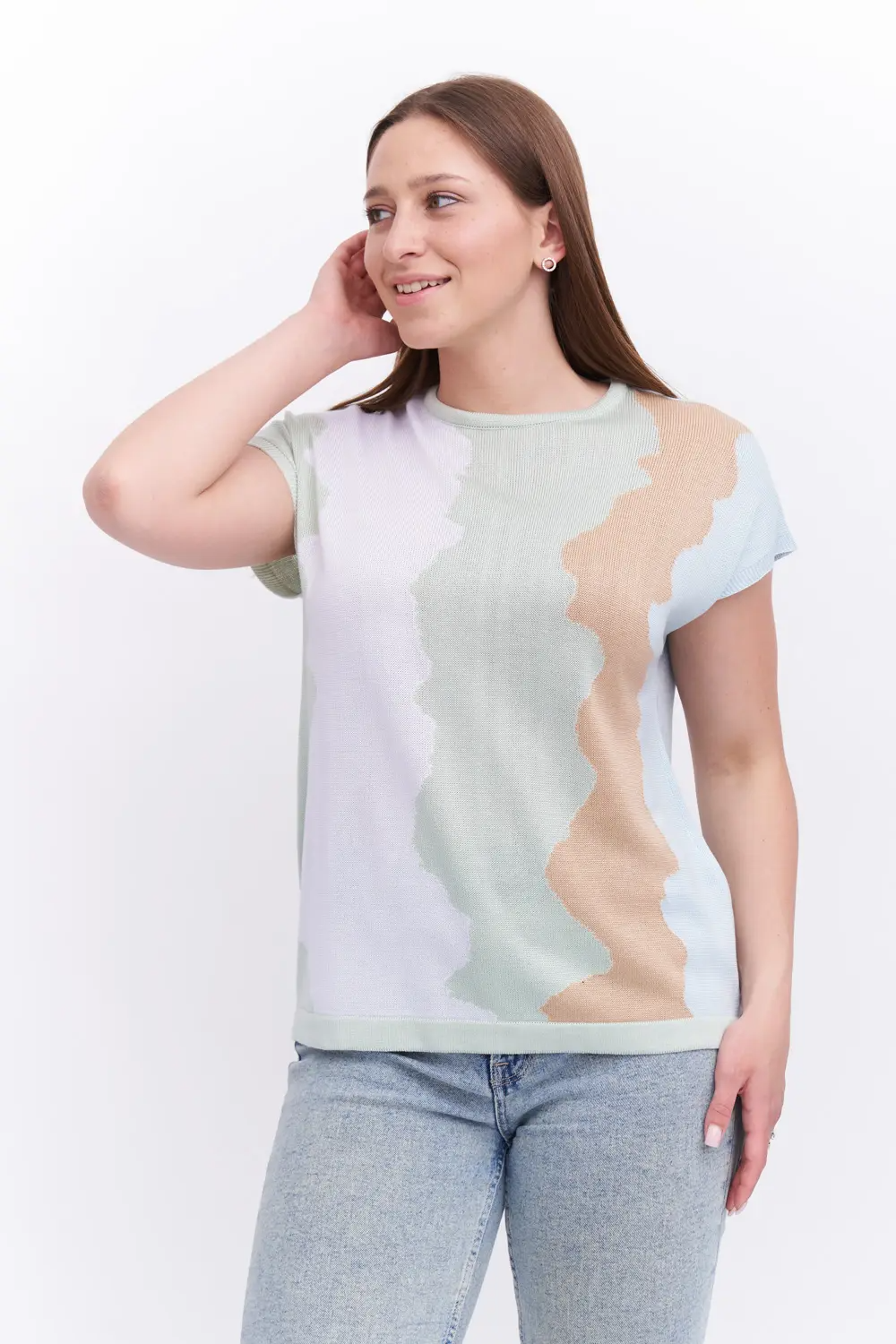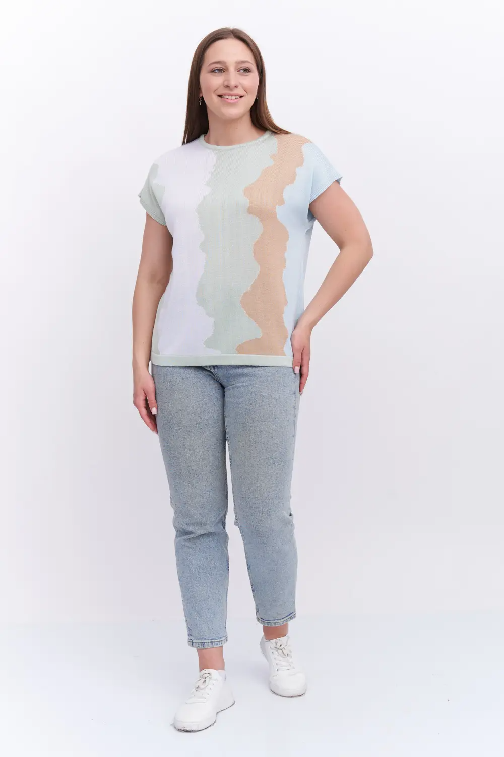Легкий трикотажный джемпер со спущеной линией плеча и круглой горловиной. Выполнен из пряжи, в составе которой 50% вискозы, что позволяет носить его как базовую вещь летом, либо весной и осенью под пиджак. В джемпере будет Вам комфортно на прогулках в теплое время года. Джемпер прямого силуэта подойдет для любого типа фигуры и составит оригинальный, модный и женственный образ абсолютно с любым низом: юбка, брюки, джинсы. мята