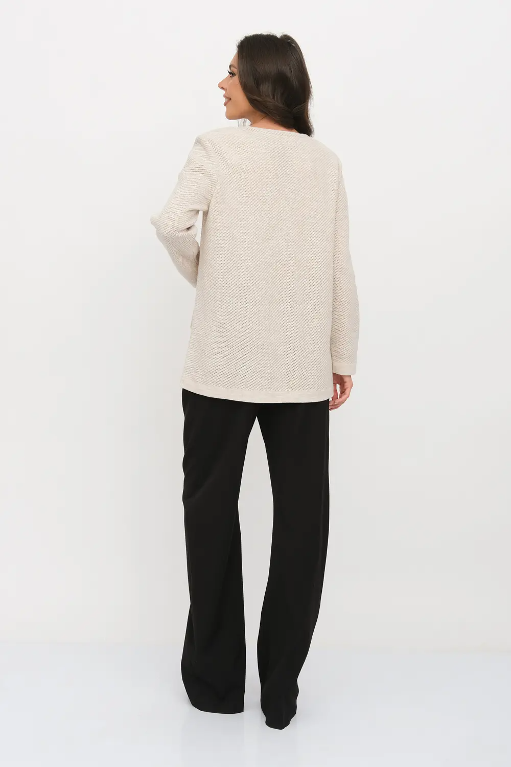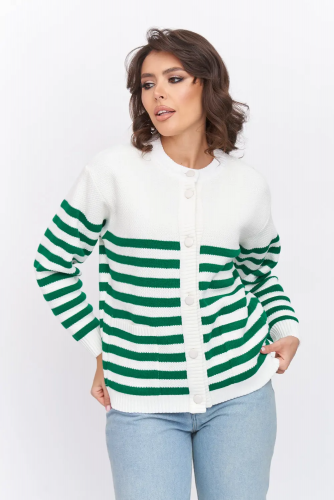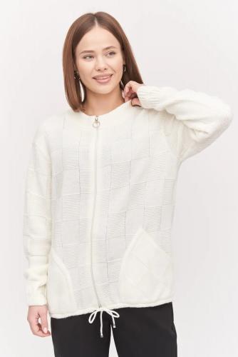 Женский вязаный жакет полуприлегающего силуэта на пуговице с V-образным вырезом. Рукава втачные, длинные. Жакет выполнен из качественной пряжи с составом 30% хлопок 70% ПАН. Модель имеет клапан, имитирующий карманы. Жакет выполнен переплетением, образующим диагональный рубчик. Легкий, эффектный жакет поддержит и деловой образ, и праздничное настроение. Отлично сочетается с любым низом в комплекте. Модель классическая, праздничная и повседневная, абсолютно на любой случай жизни. лен
