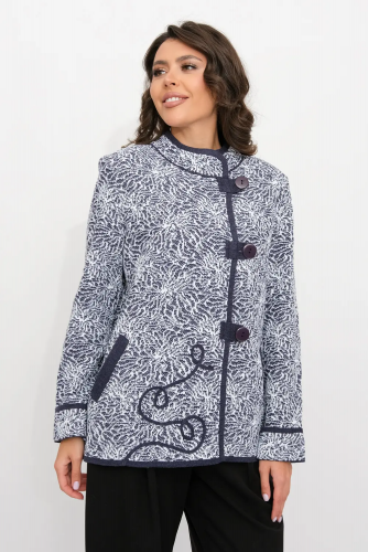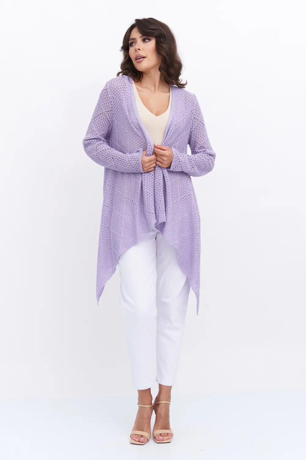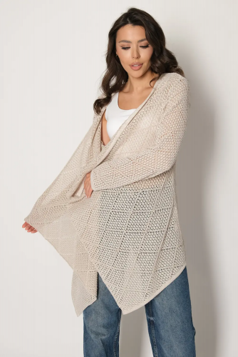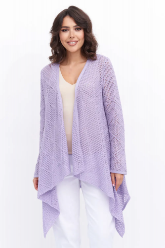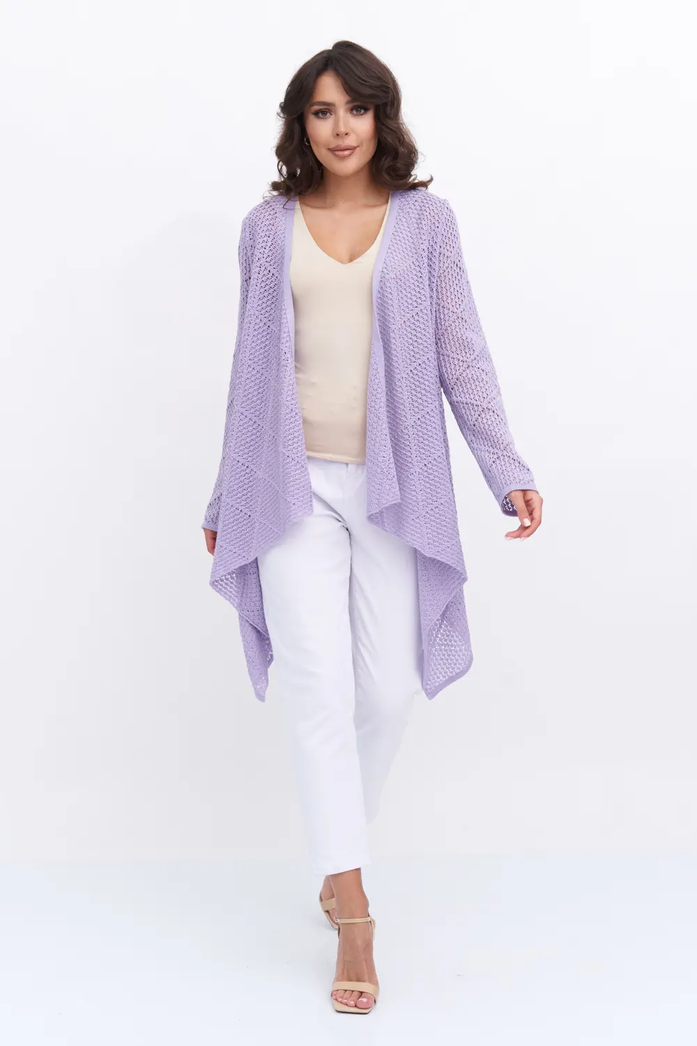 Ажурный вязаный жакет свободного силуэта с длинным рукавом. Накидка выполнена ажурной вязкой.