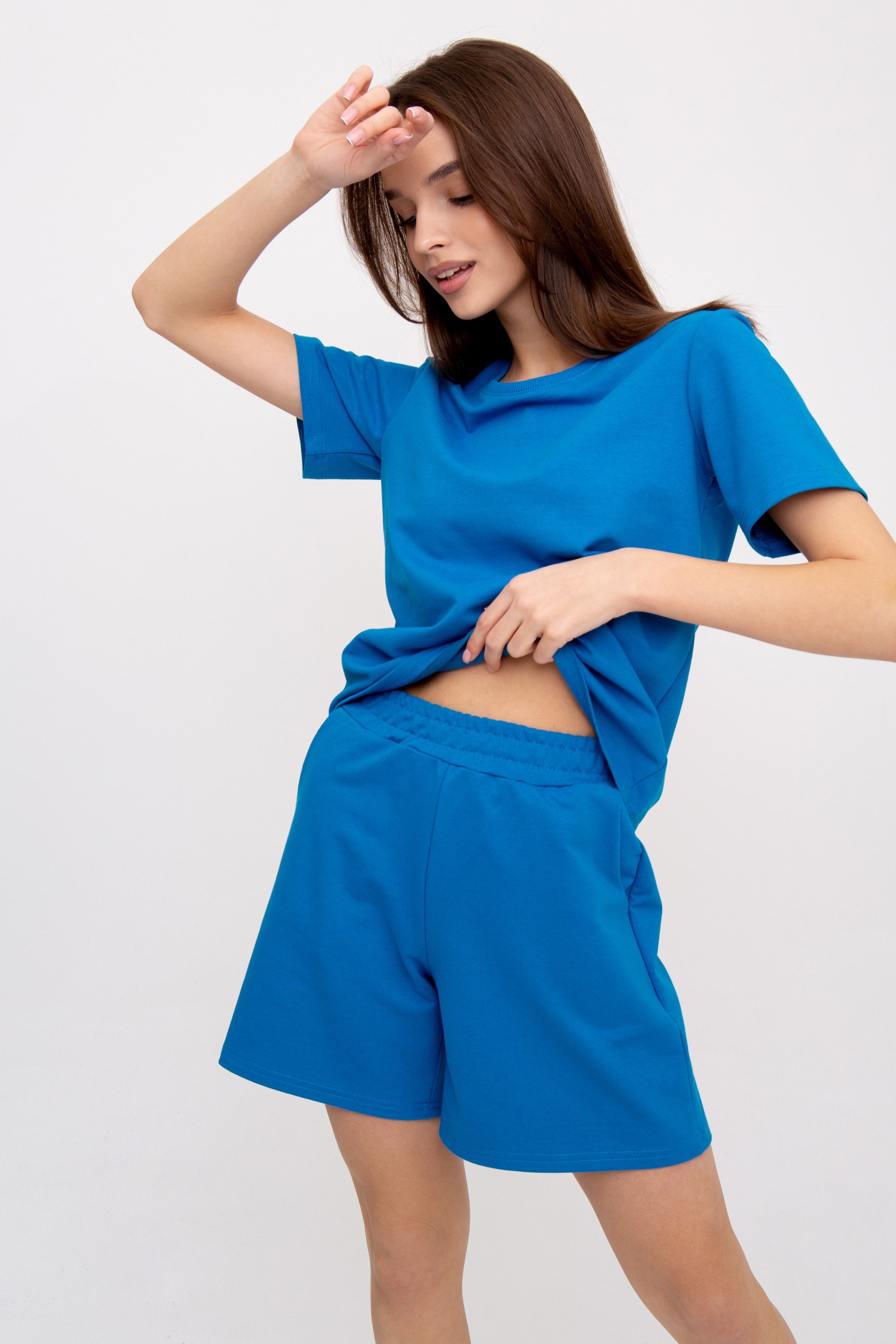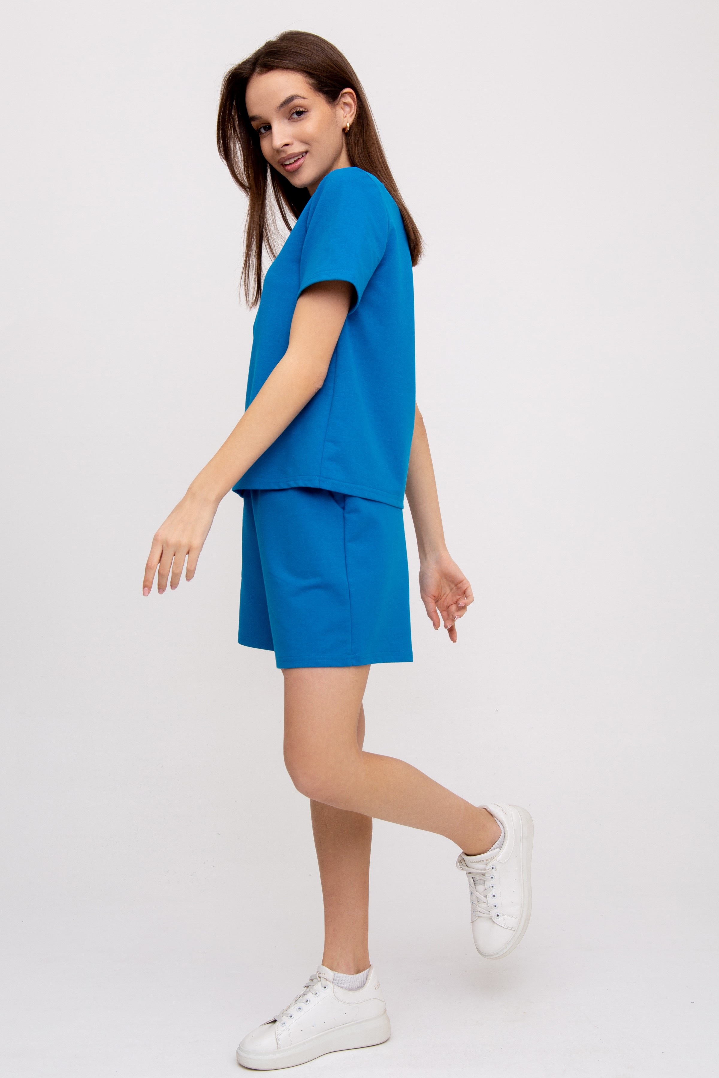 Стильный молодежный костюм  из футера состоит из футболки  и шорт
