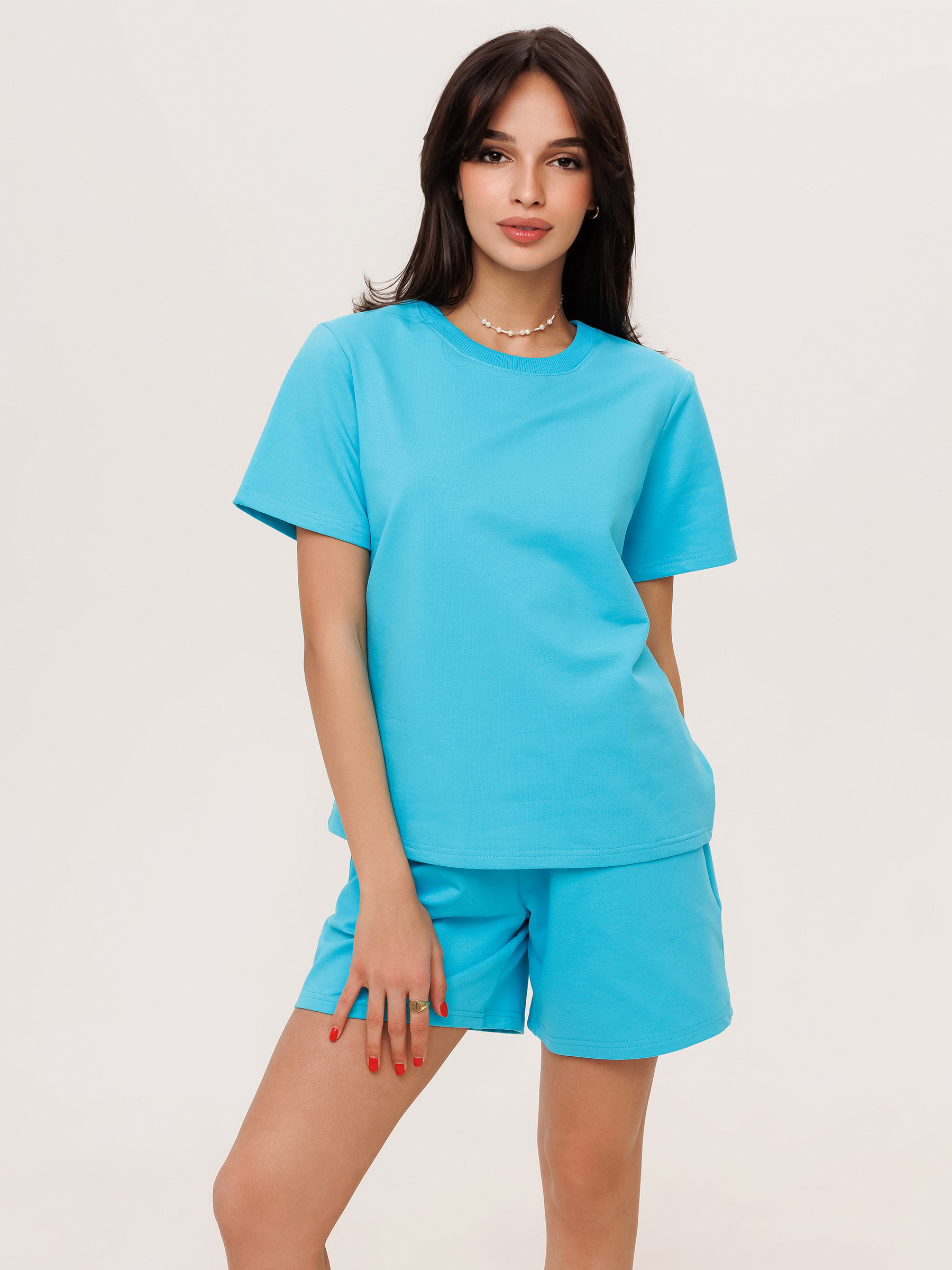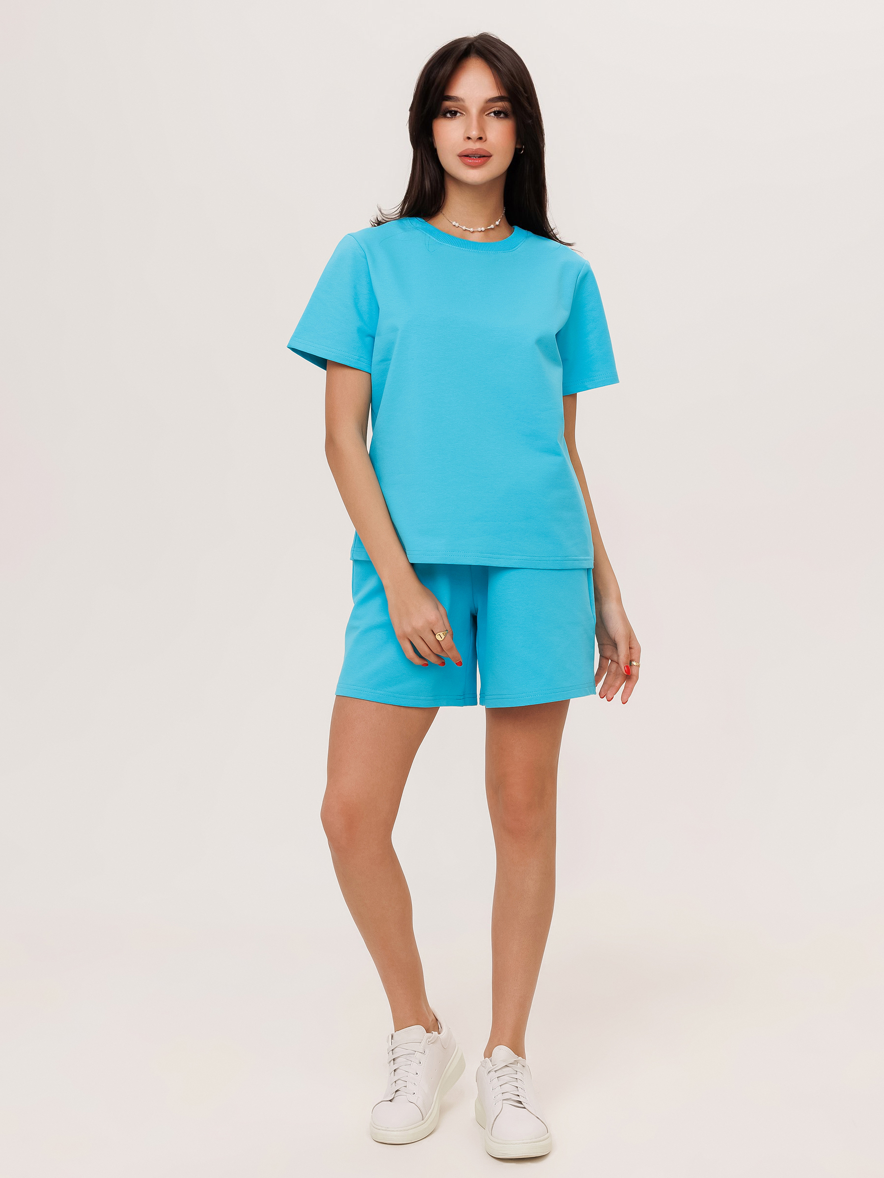 Стильный молодежный костюм  из футера состоит из футболки  и шорт