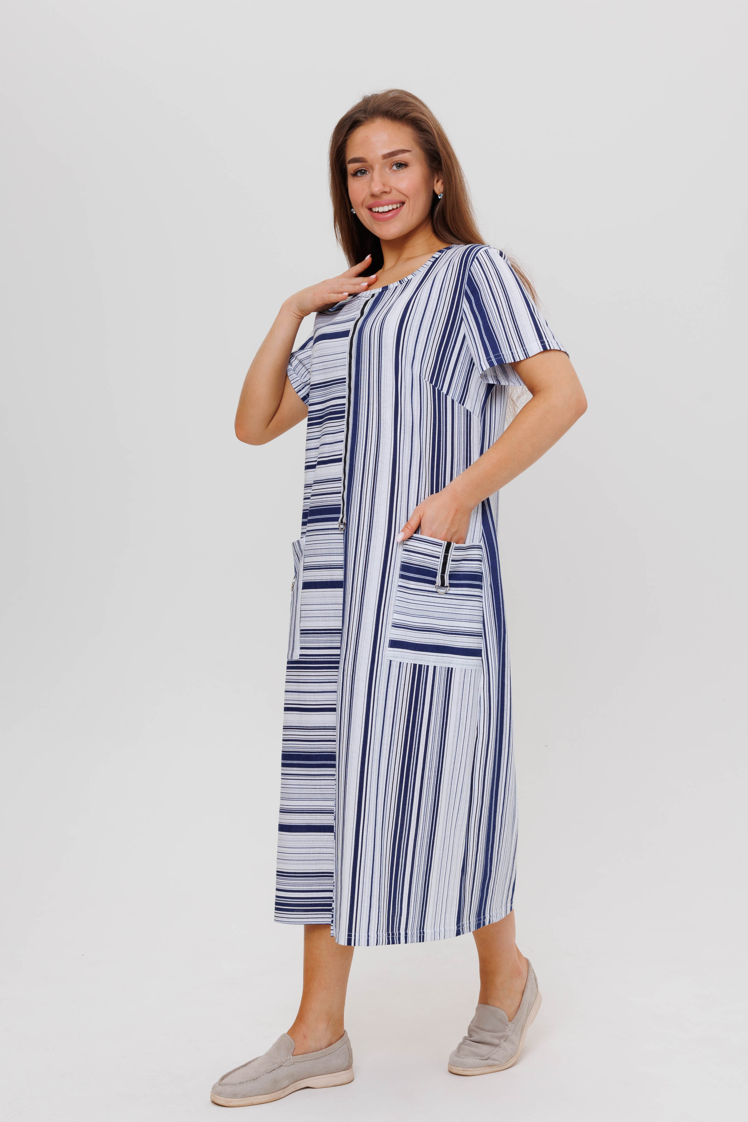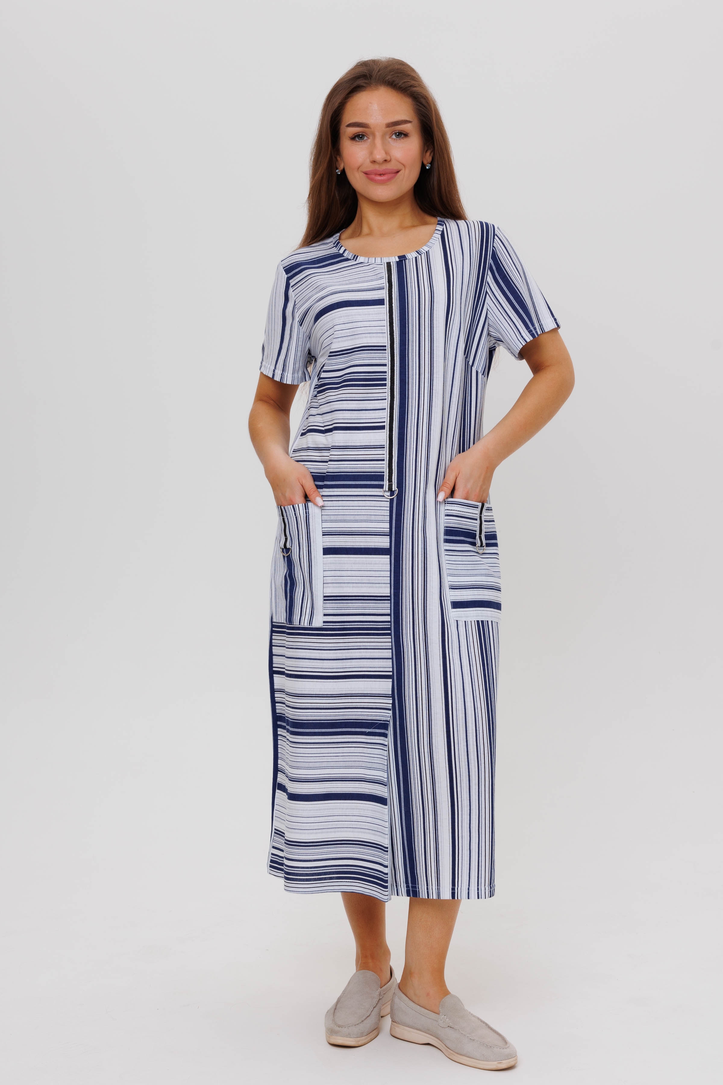 Элегантное летнее платье с коротким рукавом и накладными карманами.