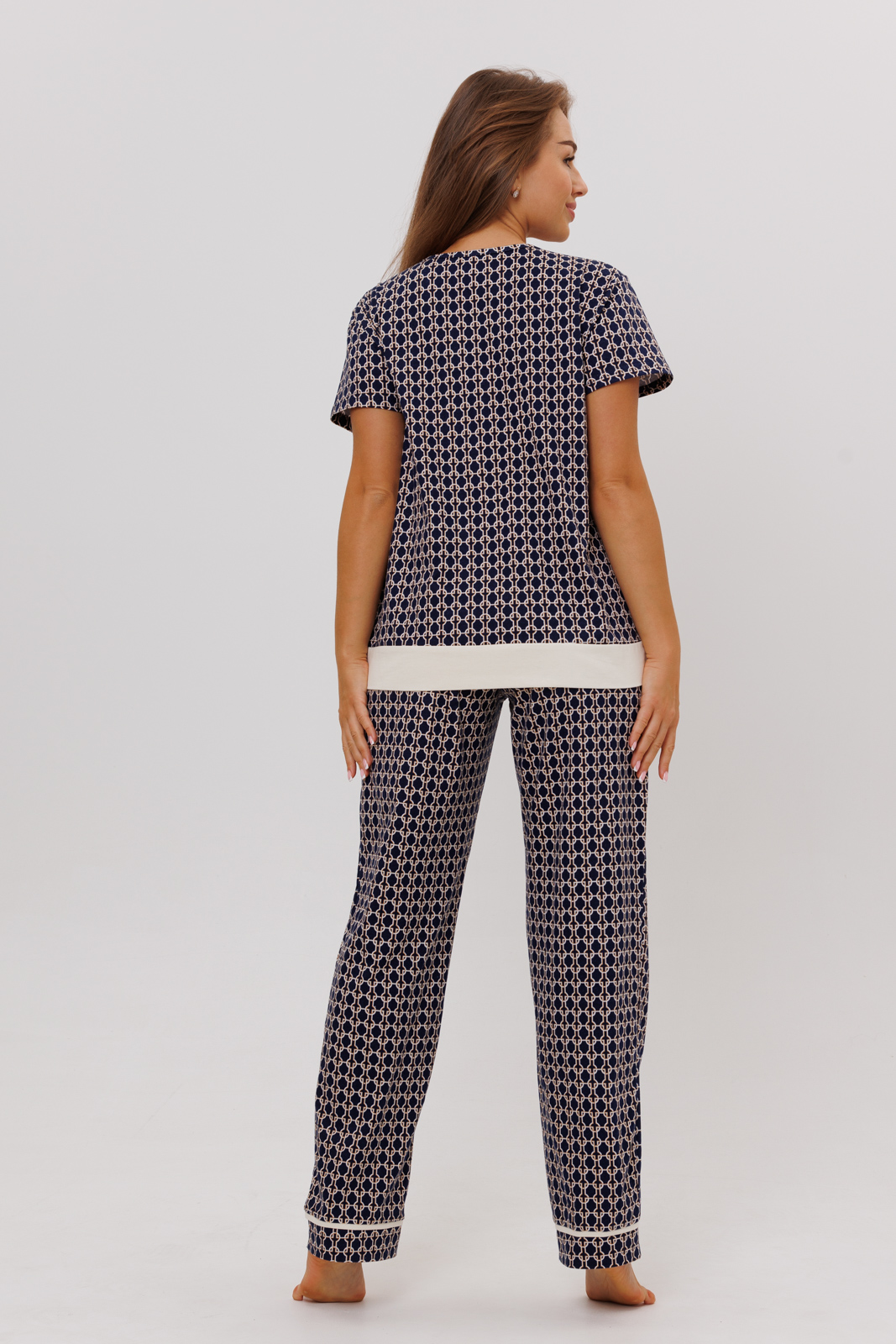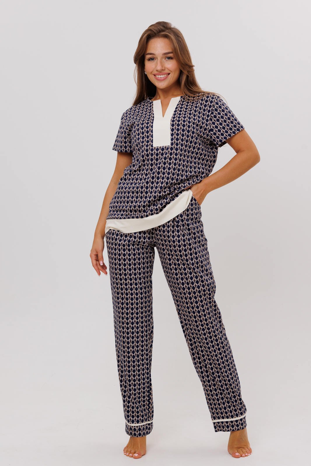 Костюм из 100% хлопковой ткани, состоит из футболки и прямых брюк.