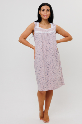 Женская ночная сорочка без рукава изготовлена из хлопкового трикотажа. Она мягкая, очень приятная на ощупь, обеспечивает хороший теплообмен. Большая размерная сетка, в том числе сорочки больших размеров, позволяет выбрать подходящий размер, обеспечивая максимальный комфорт и свободу движений. Прямой силуэт отлично подойдет и для беременных женщин. Горловина и кокетки на груди декорированы кружевом. Ночная сорочка без рукавов станет отличным подарком для любой женщины.