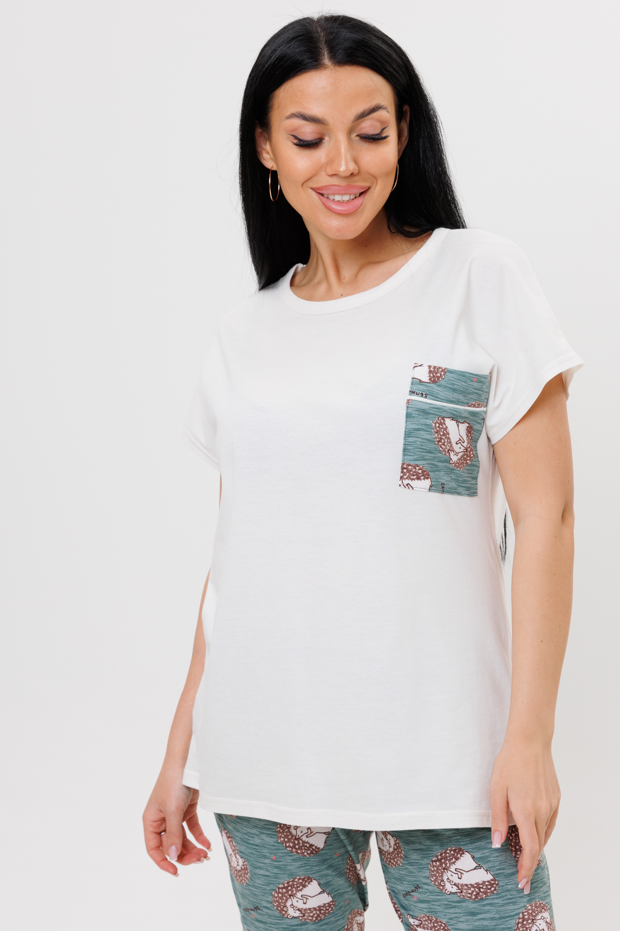 Пижама из хлопкового трикотажа - это отличный выбор для дома, отдыха и сна. Привлекательный комплект состоит из футболки и бридж. Футболка имеет округлый вырез, цельнокроеный рукав, на груди расположен карман из ткани компаньона. Бриджи с манжетами выполнены из ткани компаньона. Пижама из хлопкового трикотажа станет отличным дополнением к вашему гардеробу.
