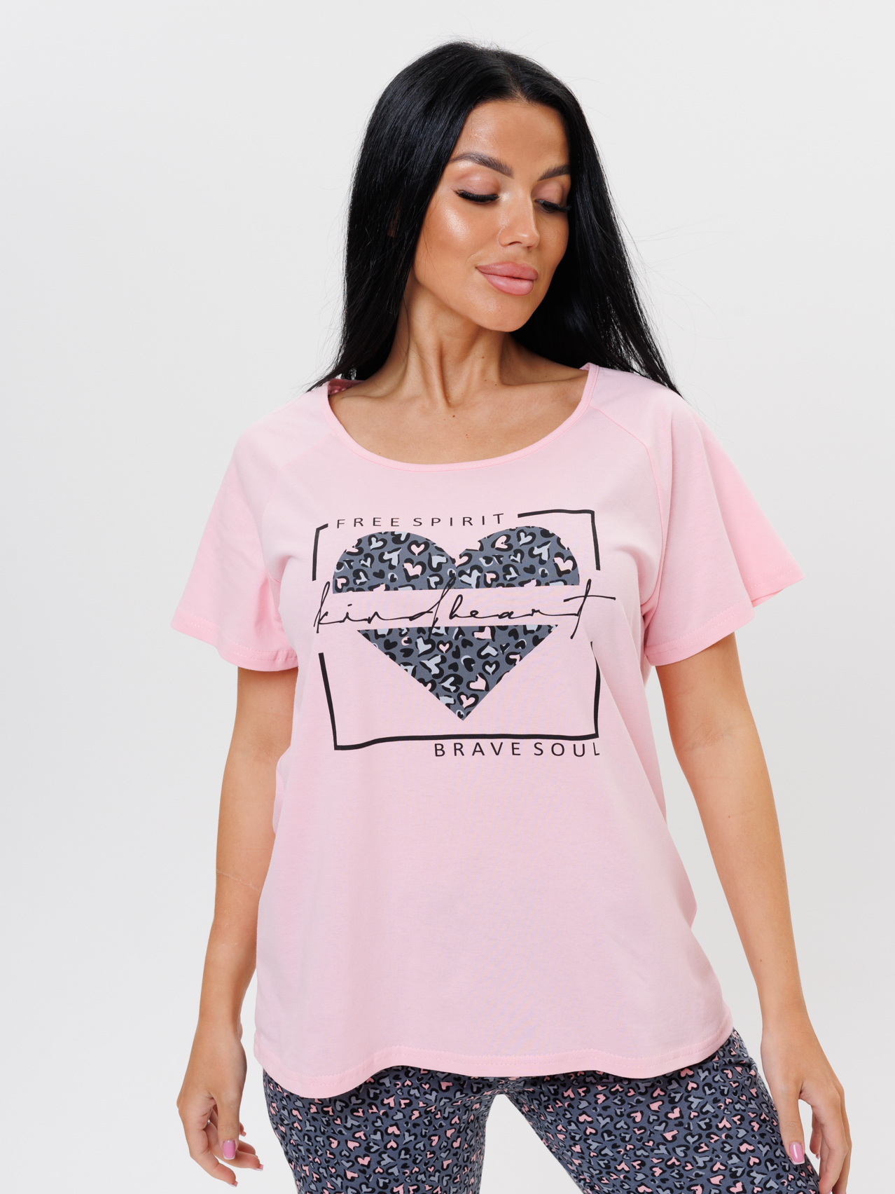 Футболка с круглым вырезом горловины, короткие рукава реглан, на груди футболки дизайнерский принт.
