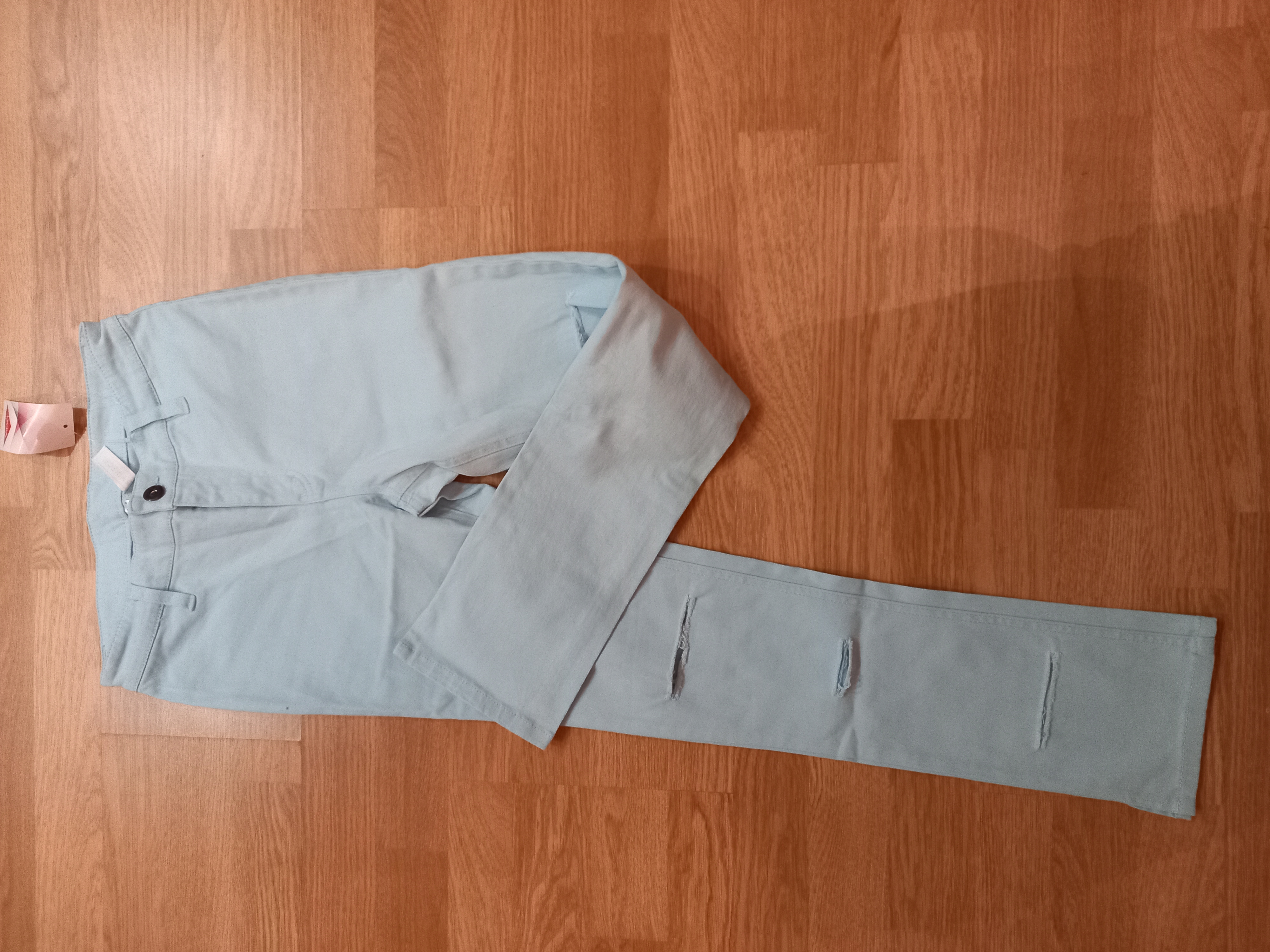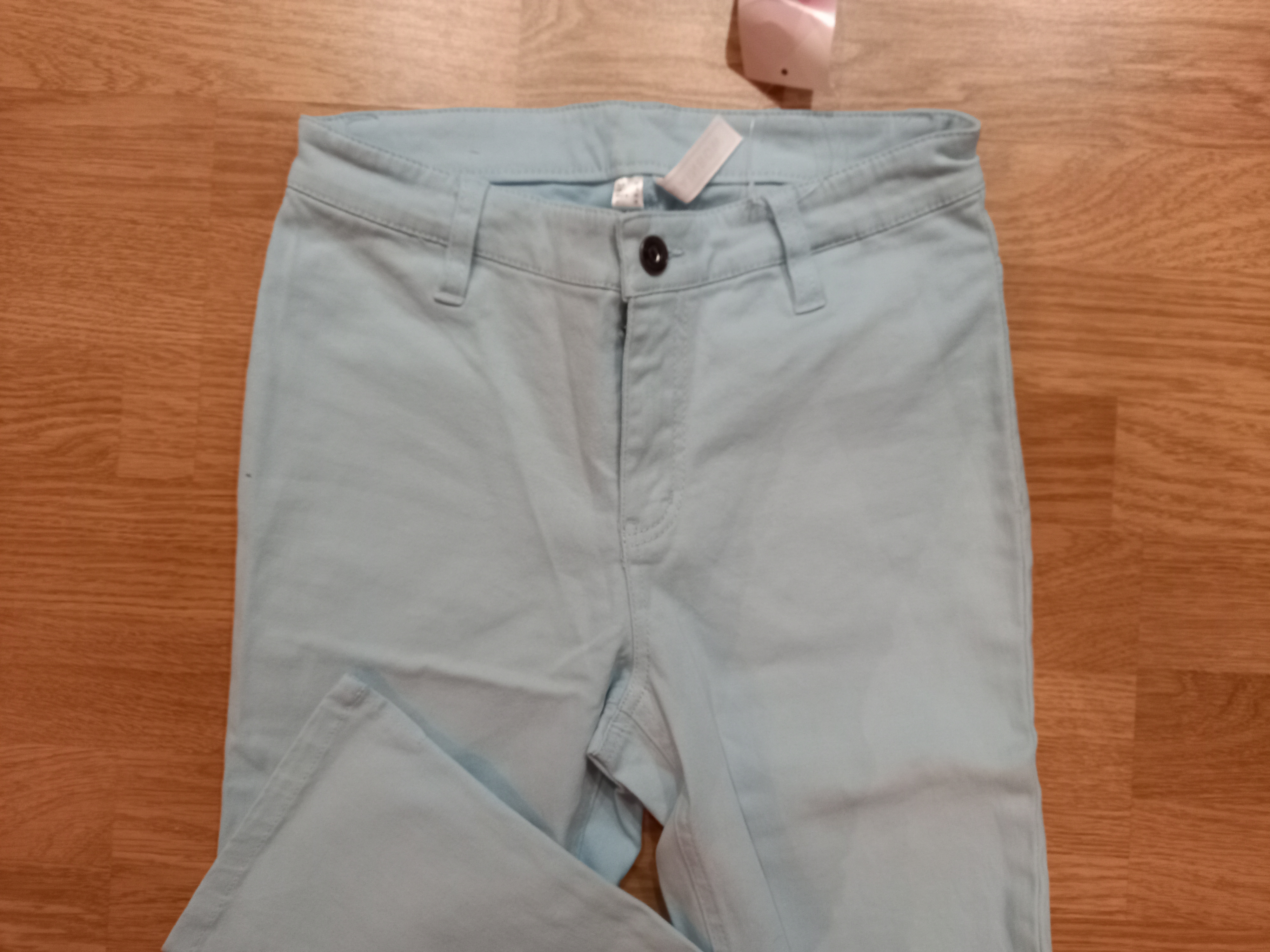 Брюки 7/8 с завышен.талией, голубой