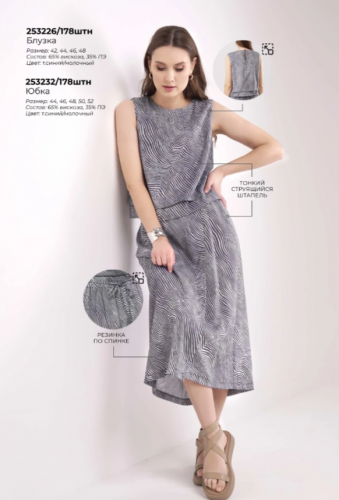 "Описание: Платье из текстильного полотна штапель, длиной миди, без рукавов. V-образный вырез горловины с отложным воротником и обтачками по горловине и пройме. Спереди шов, по бокам широкие обтачные завязки. Внизу изделия по бокам разрезы.