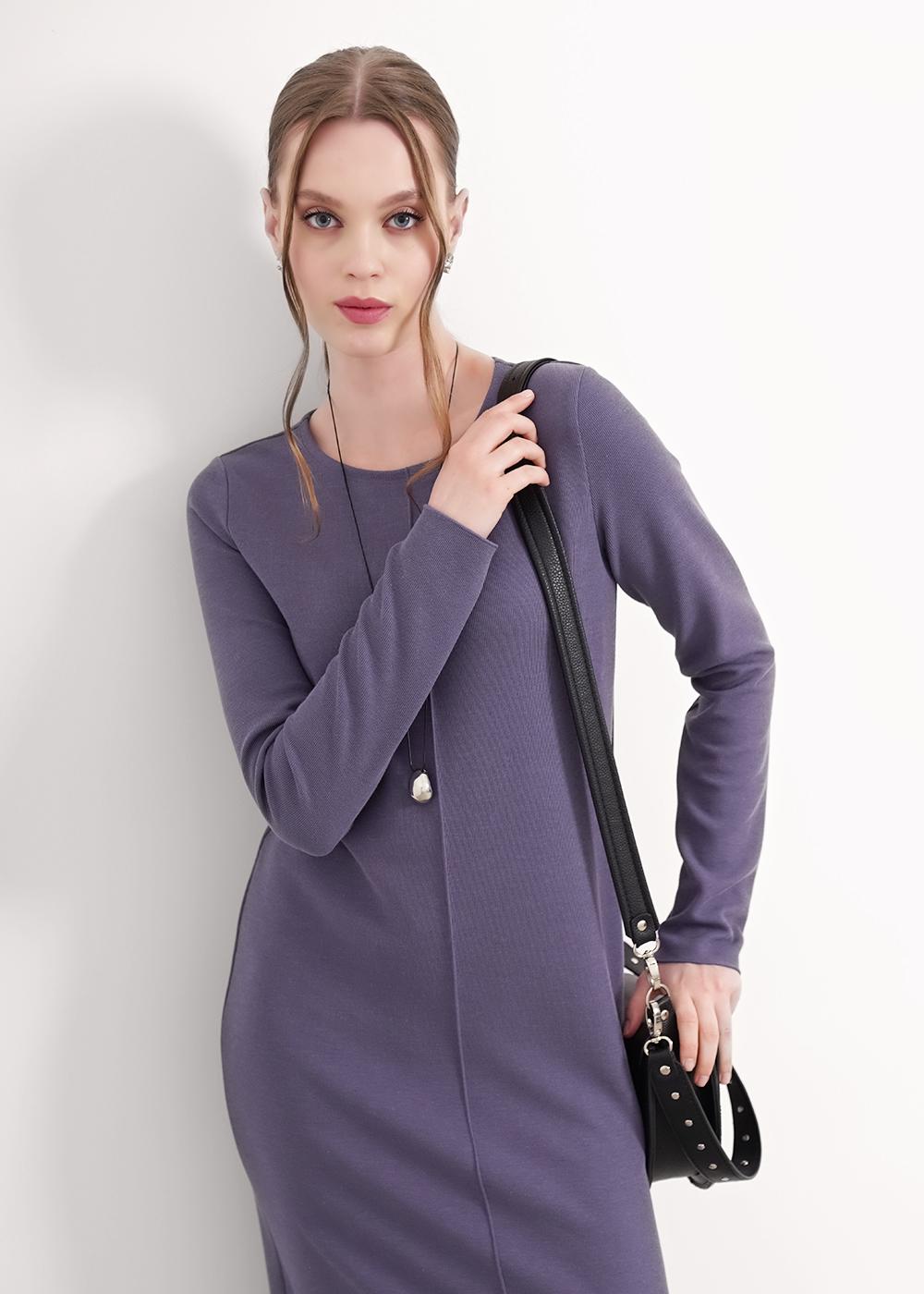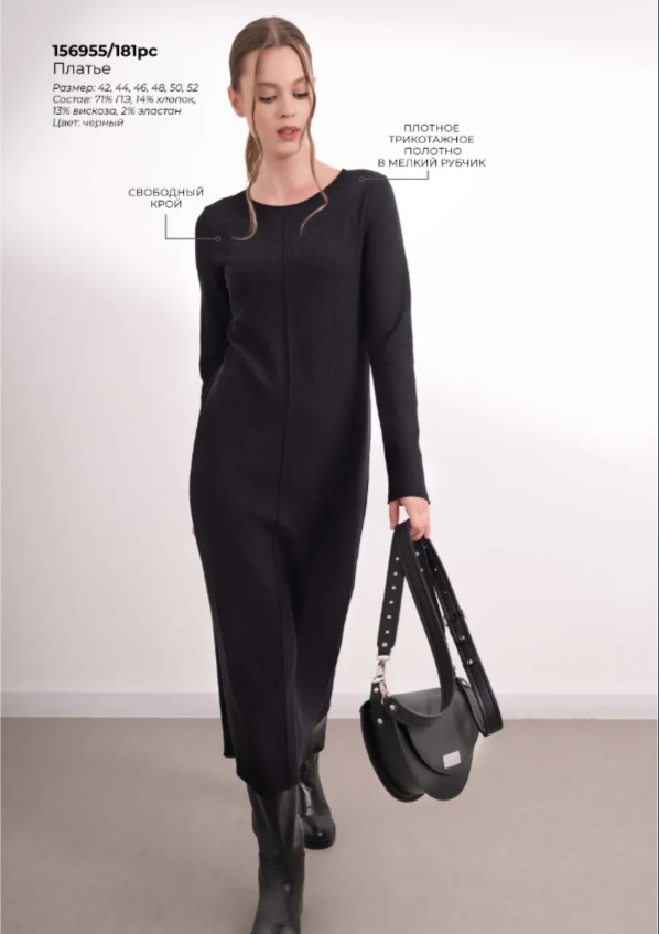 "Описание: Платье миди из трикотажного полотна силаник, прямого кроя. Округлая горловина. Длинный втачной рукав. По переду вертикальный защип, по спинке средний шов. По низу рукава и изделия мелкий оверлок.