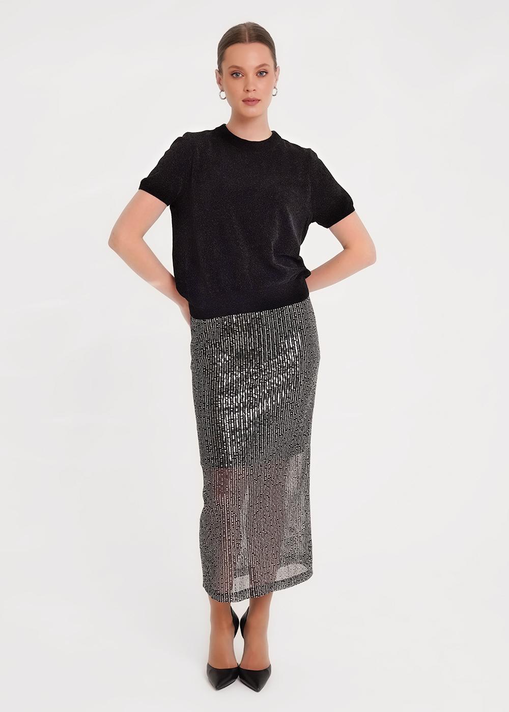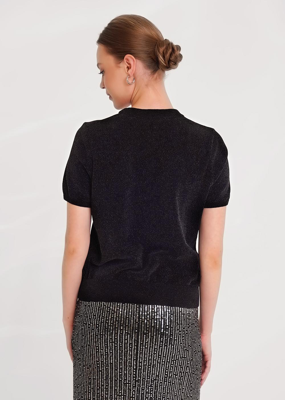 "Описание: Вязаный джемпер свободного силуэта,из синельной пряжи переплетения гладь. Короткий втачной рукав. Округлая горловина с бейкой. По низу изделия и рукавов манжеты.