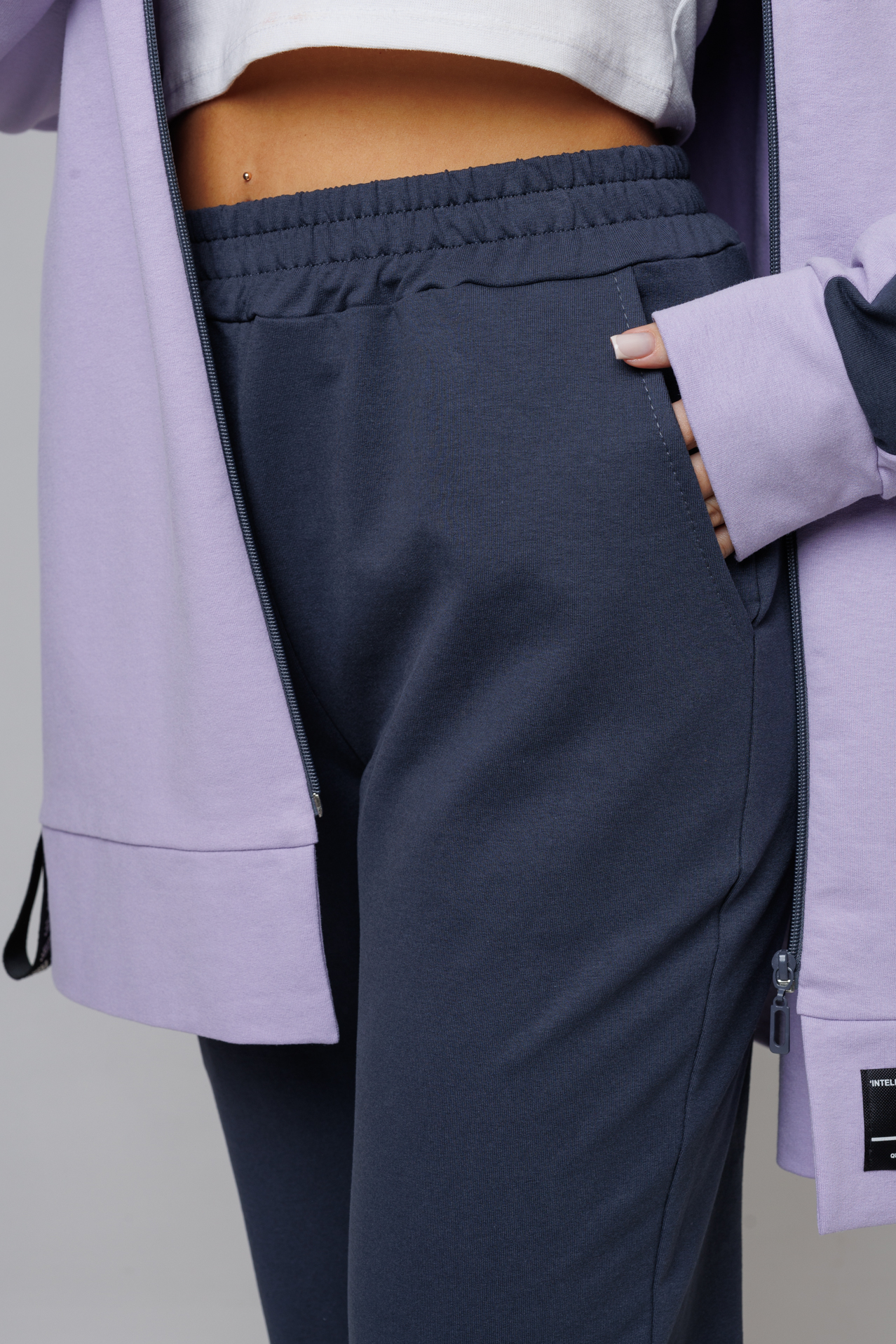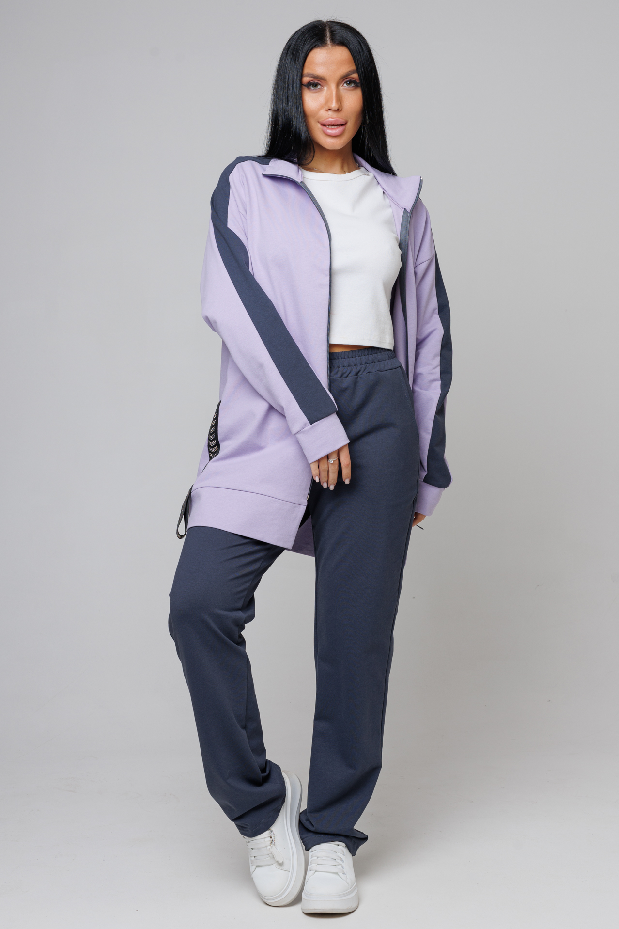 Костюм, выполненный из футера 2-х нитки, состоит их брюк и удлиненной олимпийки.