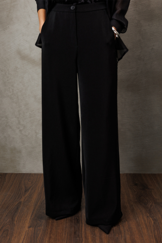 3222 95% ПЭ, 5% спандэкс Брюки 3900 42-54 170 красный Брюки-палаццо из костюмной ткани с лампасом из пайеток. Брюки на притачном поясе и застежкой-гульфик. Пояс застегивается на петлю-пуговицу. По переду карман в шве притачивания к лампасу. По спинке пояс на резинке и вытачка от пояса.