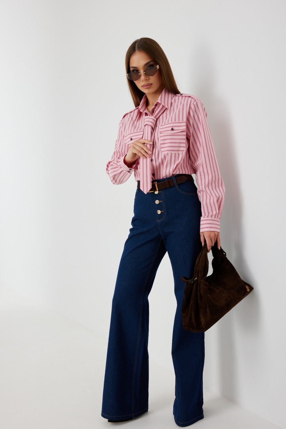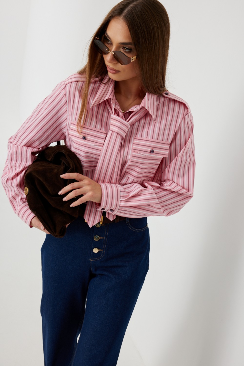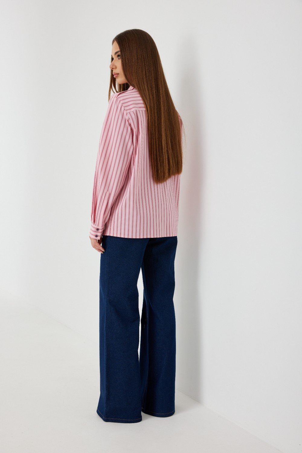 в полоску. Спинка с кокеткой. Застежка на петли и пуговицы, по переду накладные