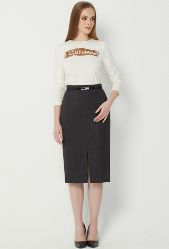 Юбка-крандаш на обтачке, в среднем шве спинки обработана потайная молния и шлица, на подкладке.