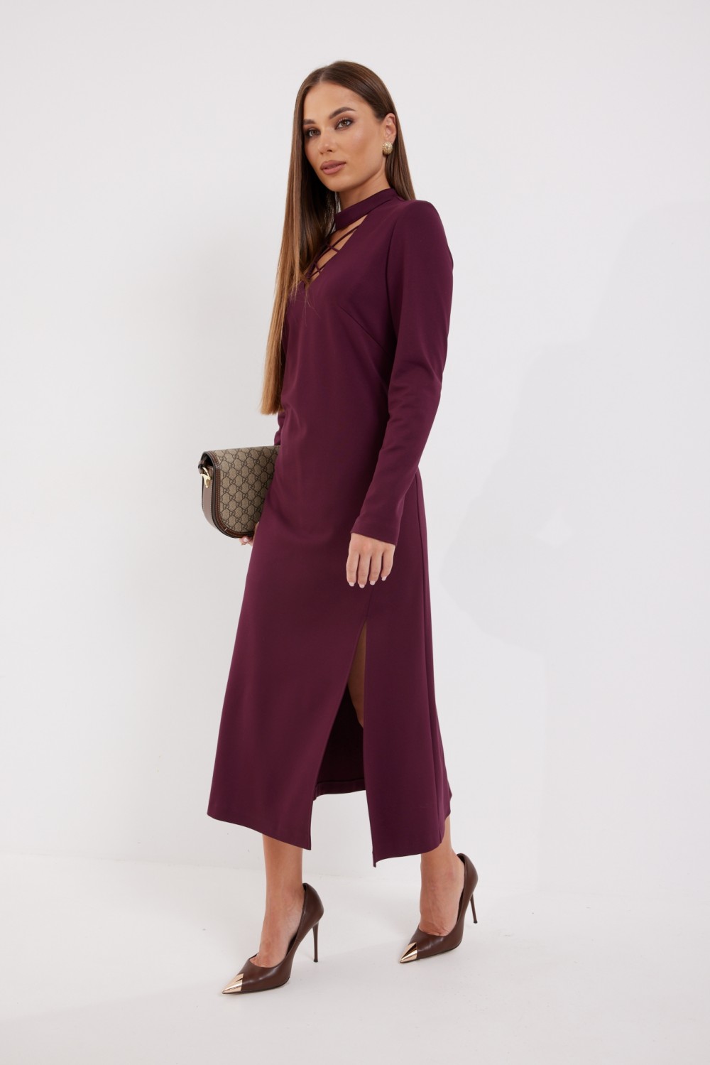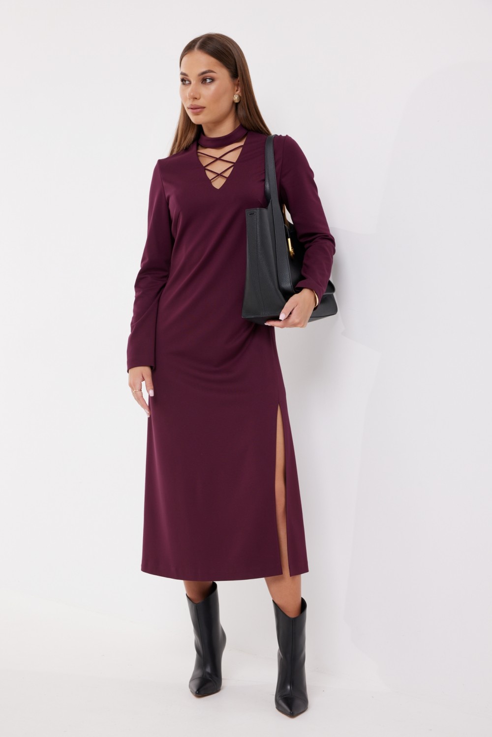 шнуровкой. По переду боковой разрез длиной 46 см.  Рукав узкий прямой. Застёжка по спинке на