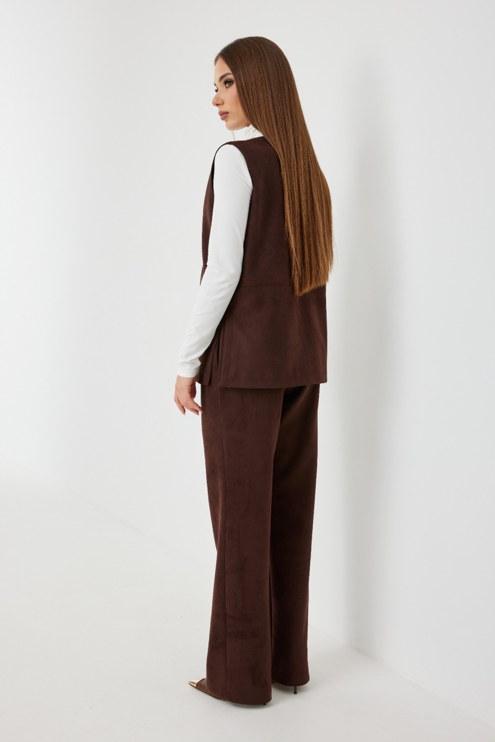 ткани «под замшу» прямого кроя, слегка зауженные книзу, высокая посадка, пояс
