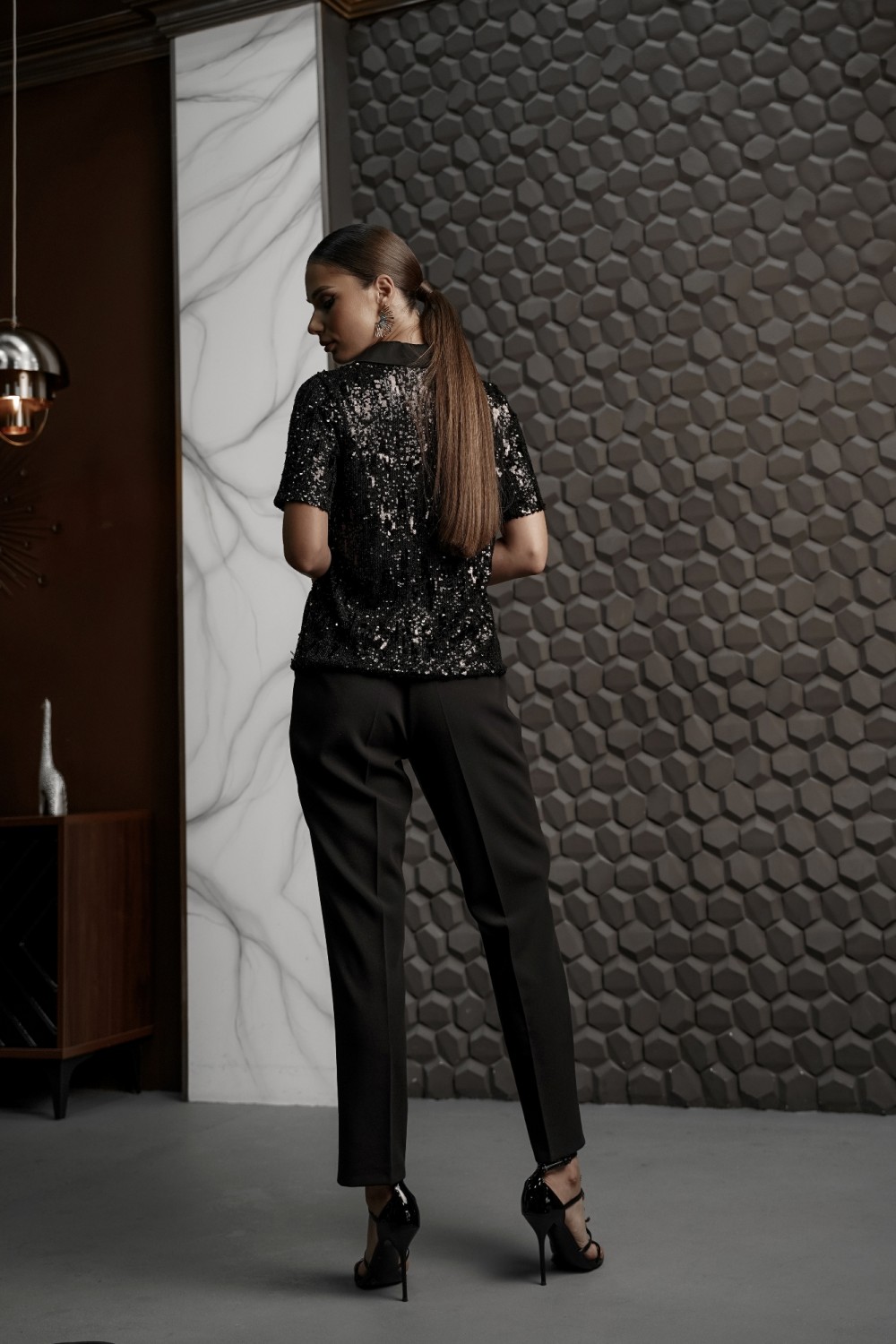 65 % ПЭ, 30 % вискоза, 5 % спандекс 164-170 см. - "Брюки из костюмно-плательной ткани, зауженные к низу,