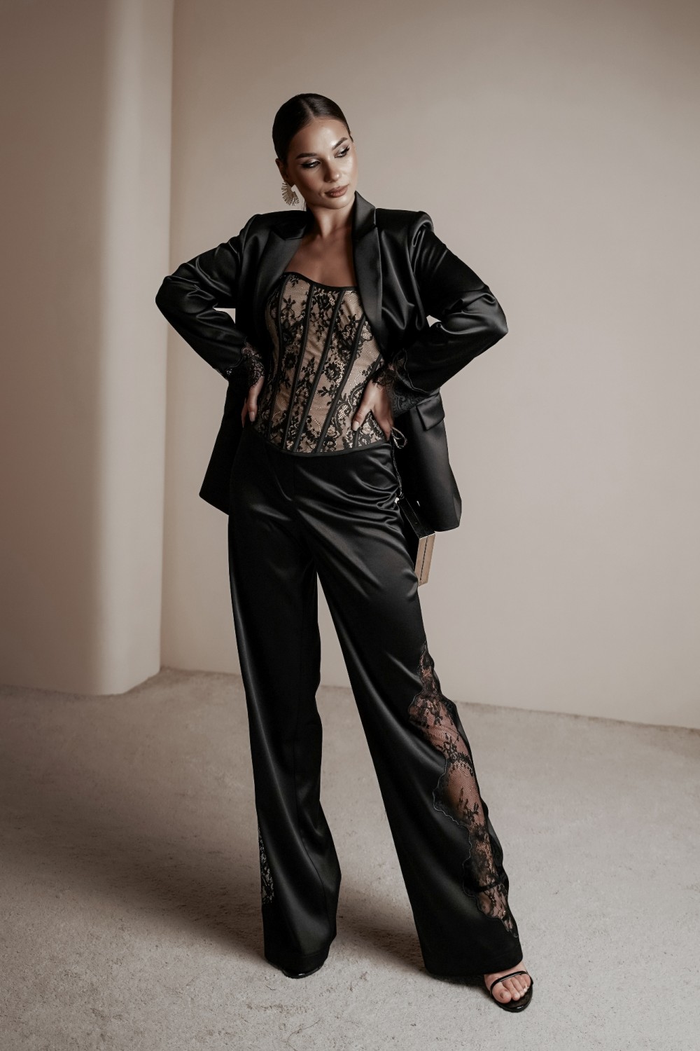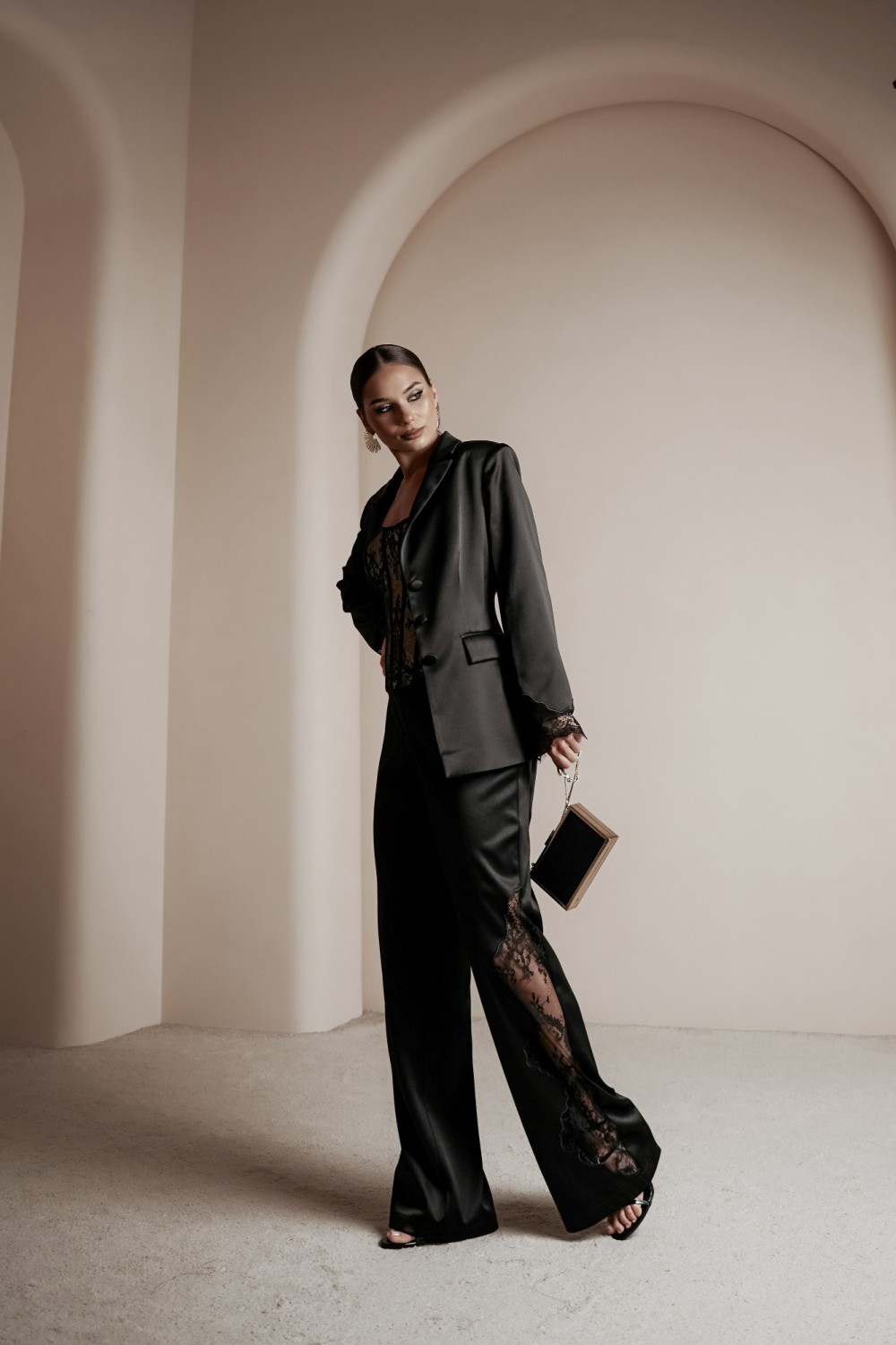 кружевом. Воротник пиджачный с отрезной стойкой. Жакет на подкладке с плечевыми