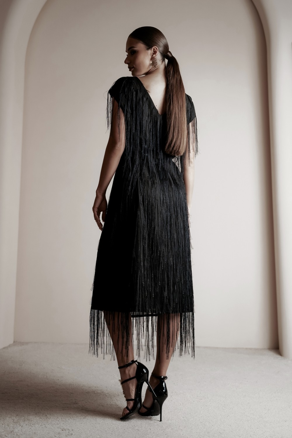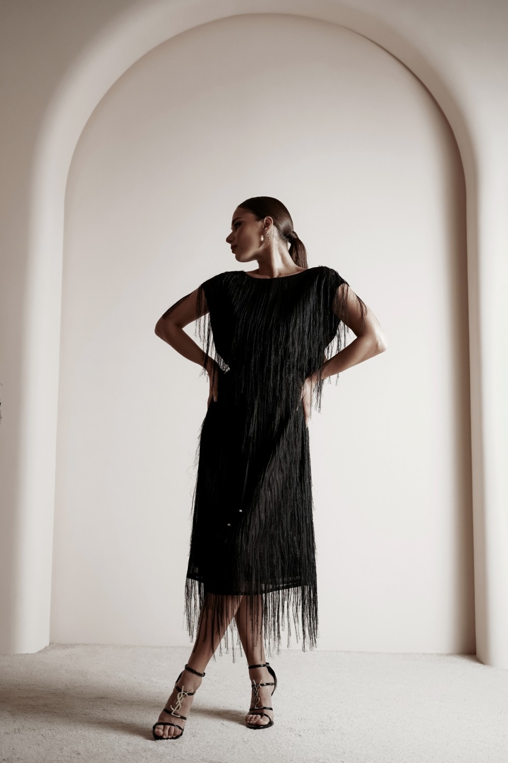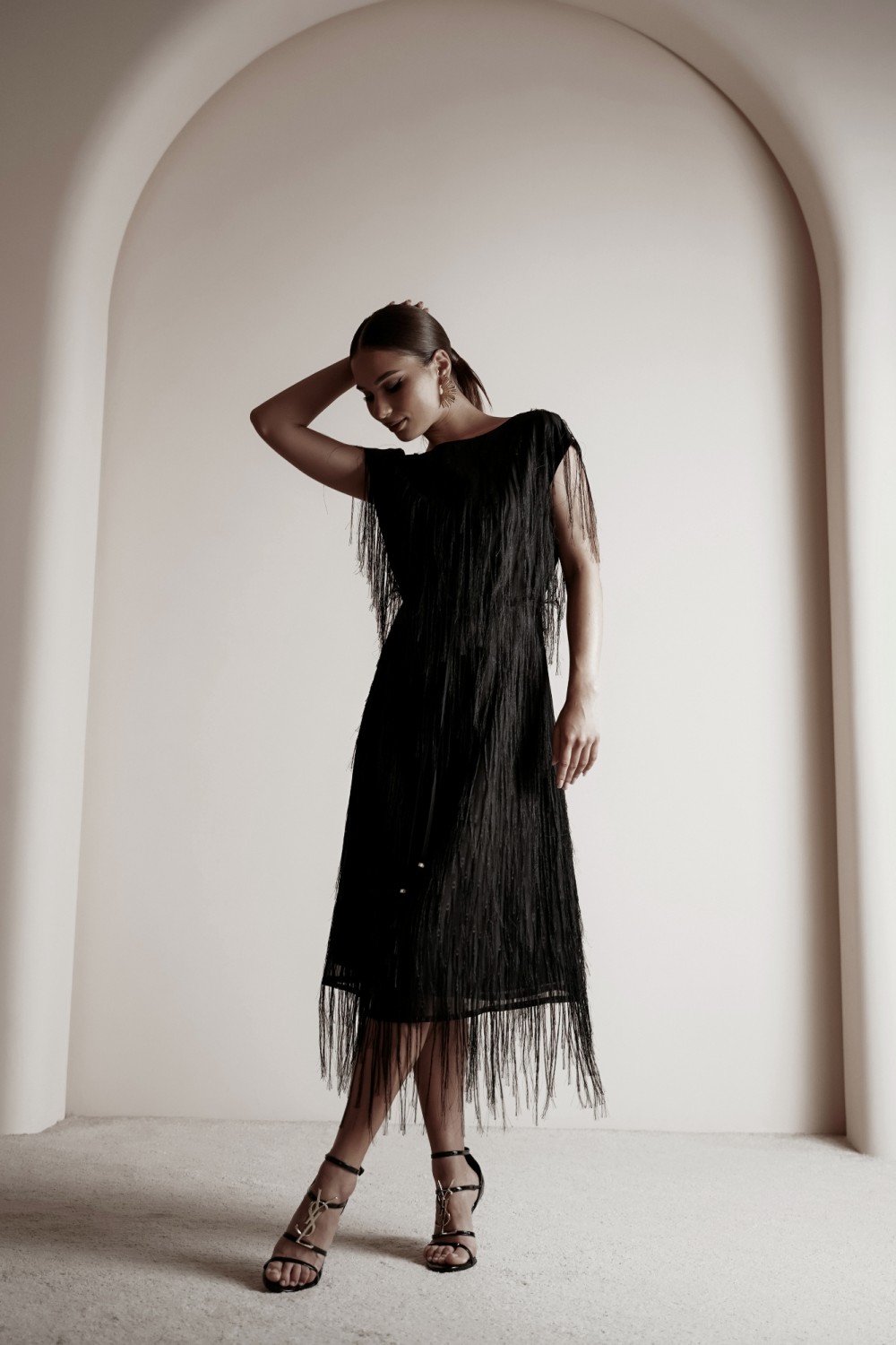 плательно-блузочной ткани с бахромой. По переду горловина округлой формы, по
