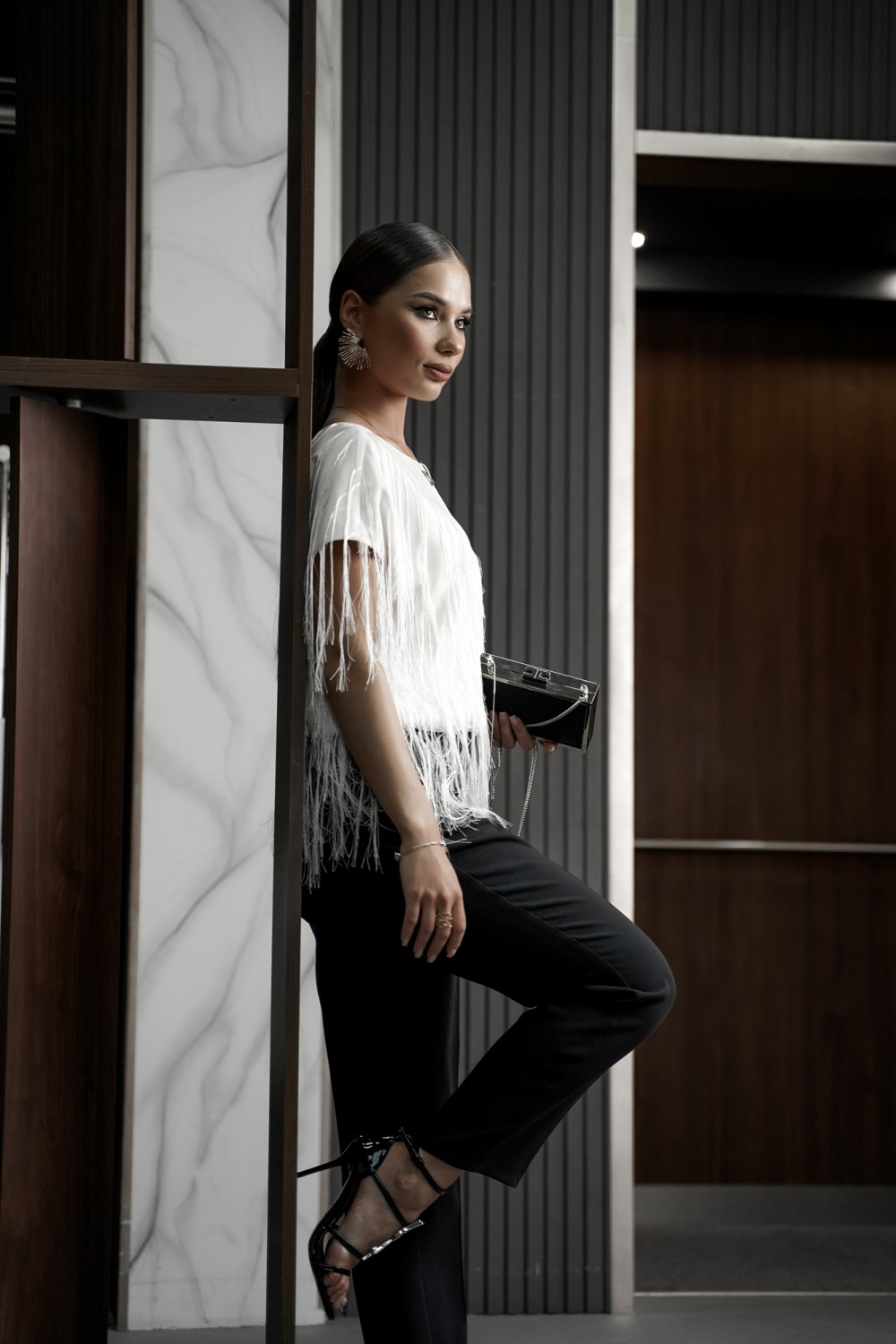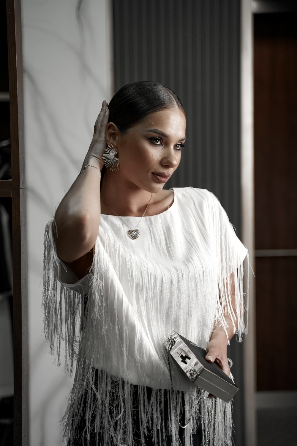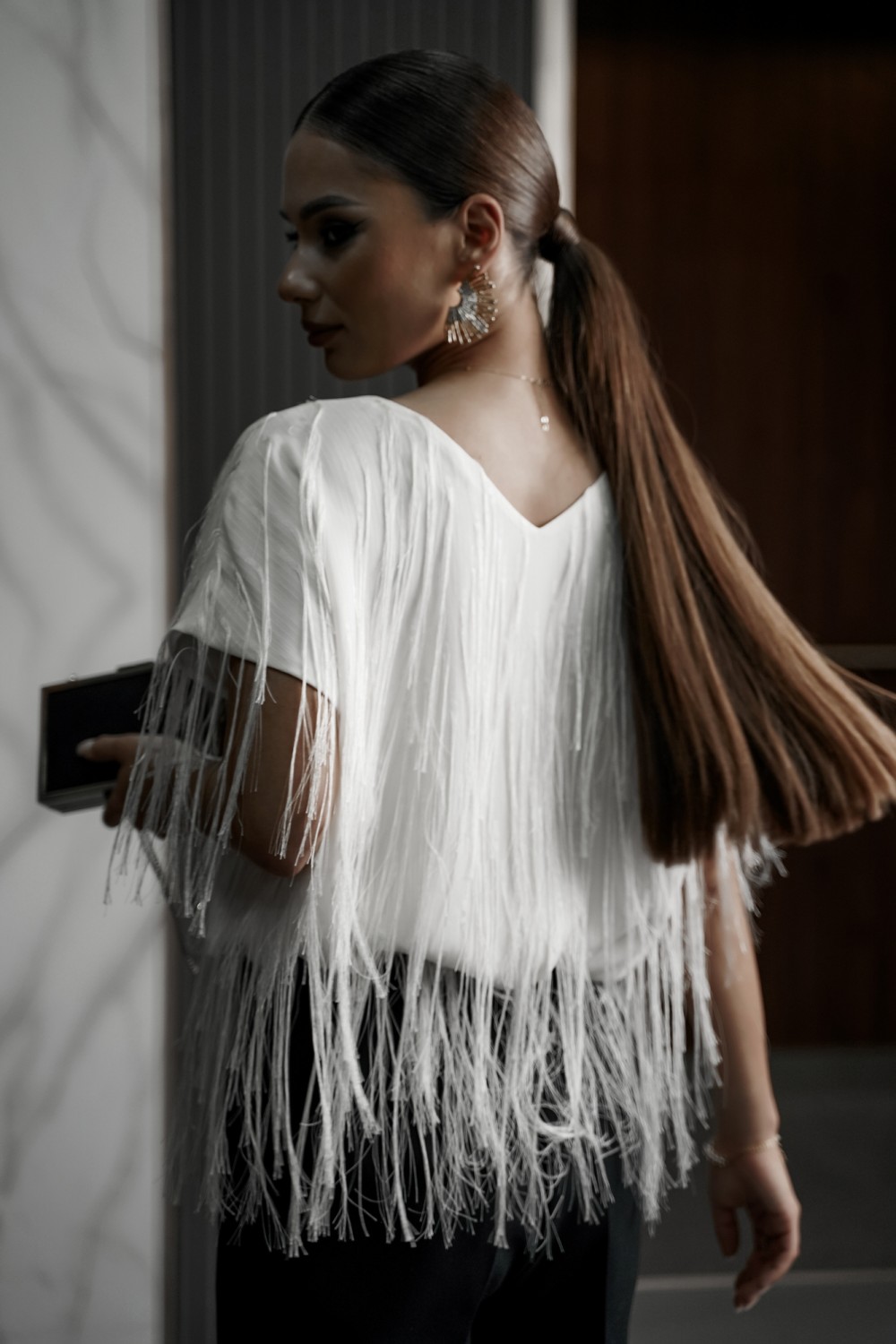 бахромой. По переду горловина округлой формы, по спинке-V-образной. Блузка на атласной