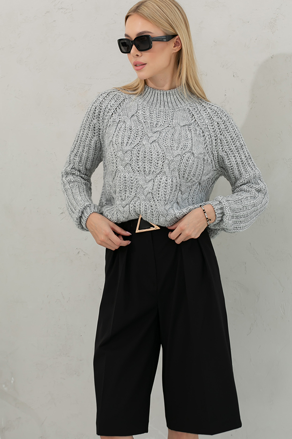 Шорты свободного силуэта выполнены из костюмной ткани. На передней половинке по линии талии заложены две односторонние мягкие складки, направленные в сторону гульфика. На задней половинке - талиевые вытачки. Карманы с подкройным бочком. Притачной пояс со шлёвками. Застёжка на молнию-гульфик и пуговицу.