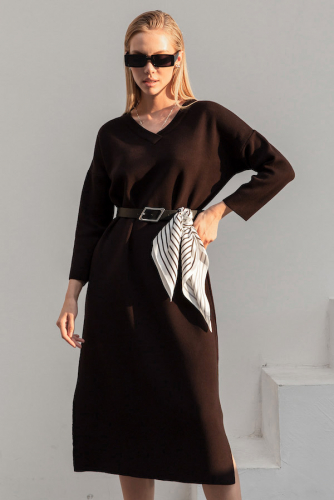 Костюм из джемпера и юбки с рисунком в узкий рубчик. Юбка прилегающего силуэта. Пояс с эластичной резиной. Джемпер свободного силуэта. Рукав втачной в спущенную пройму. Вырез горловины оформлен воротником-стойкой с отворотом. Изделие выполнено из мягкой структуриванной пряжи.