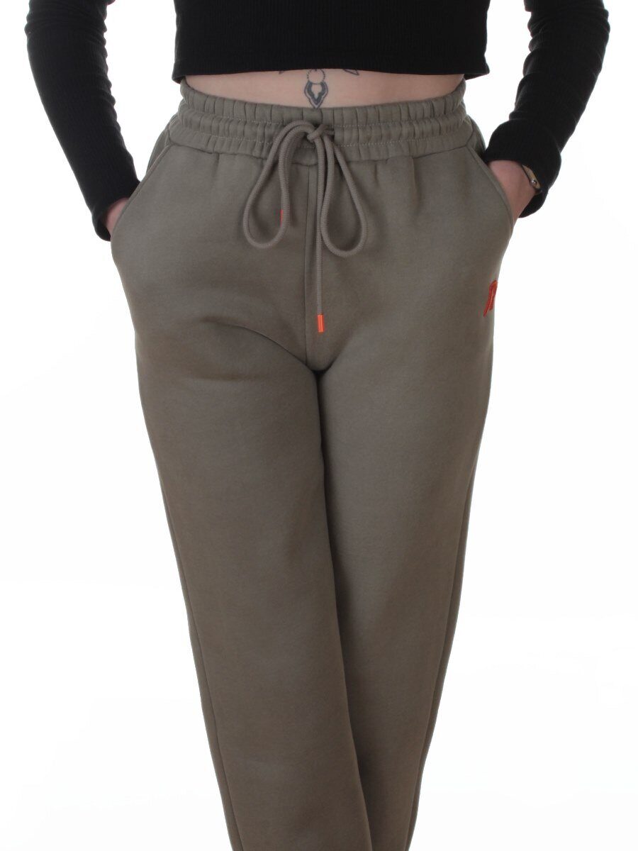 2617 GRAY/GREEN Брюки спортивные утепленные женские (85% хлопок, 10% полиэстер, 5% спандекс)