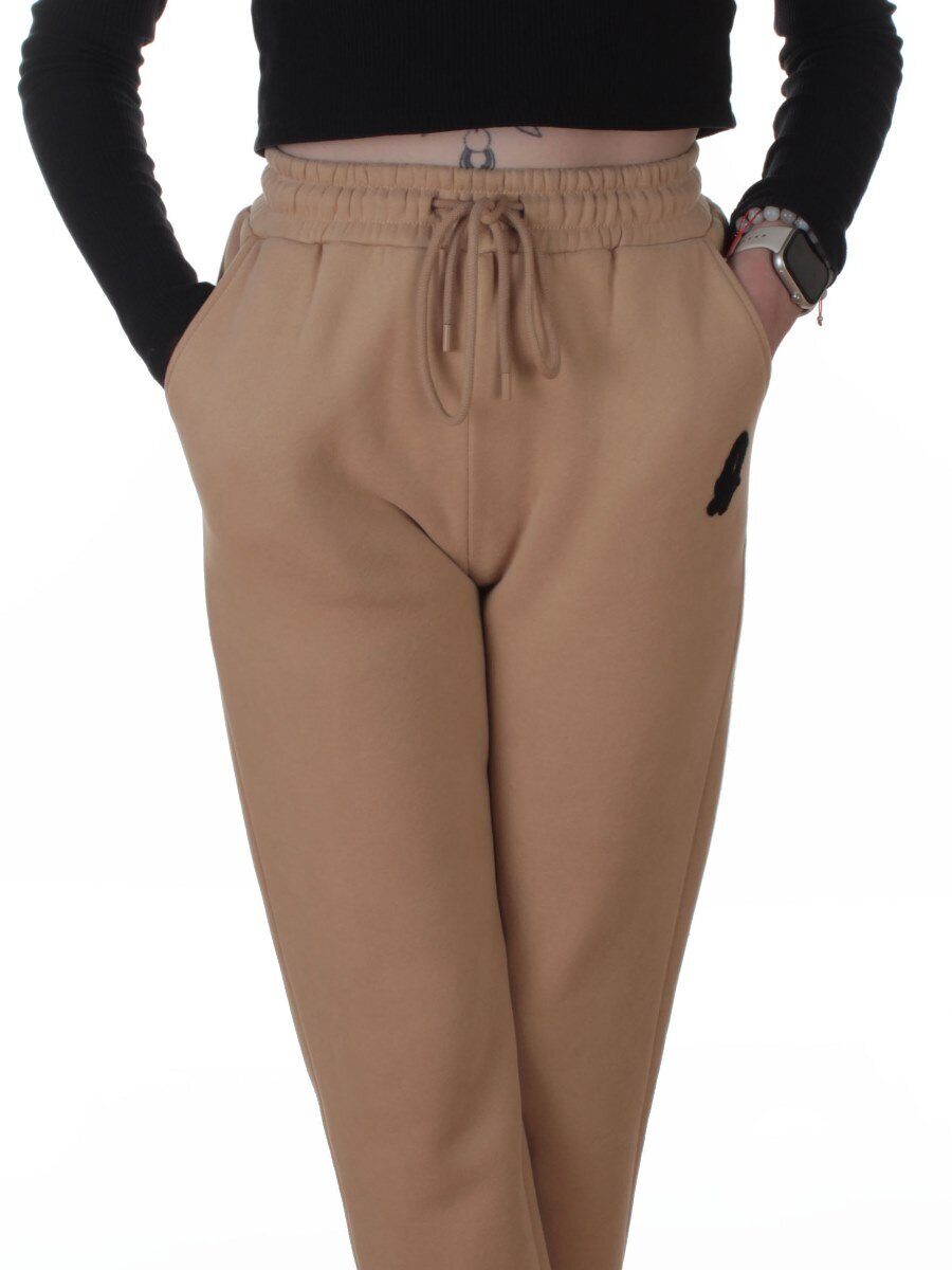 2619 BEIGE Брюки спортивные утепленные женские (85% хлопок, 10% полиэстер, 5% спандекс)