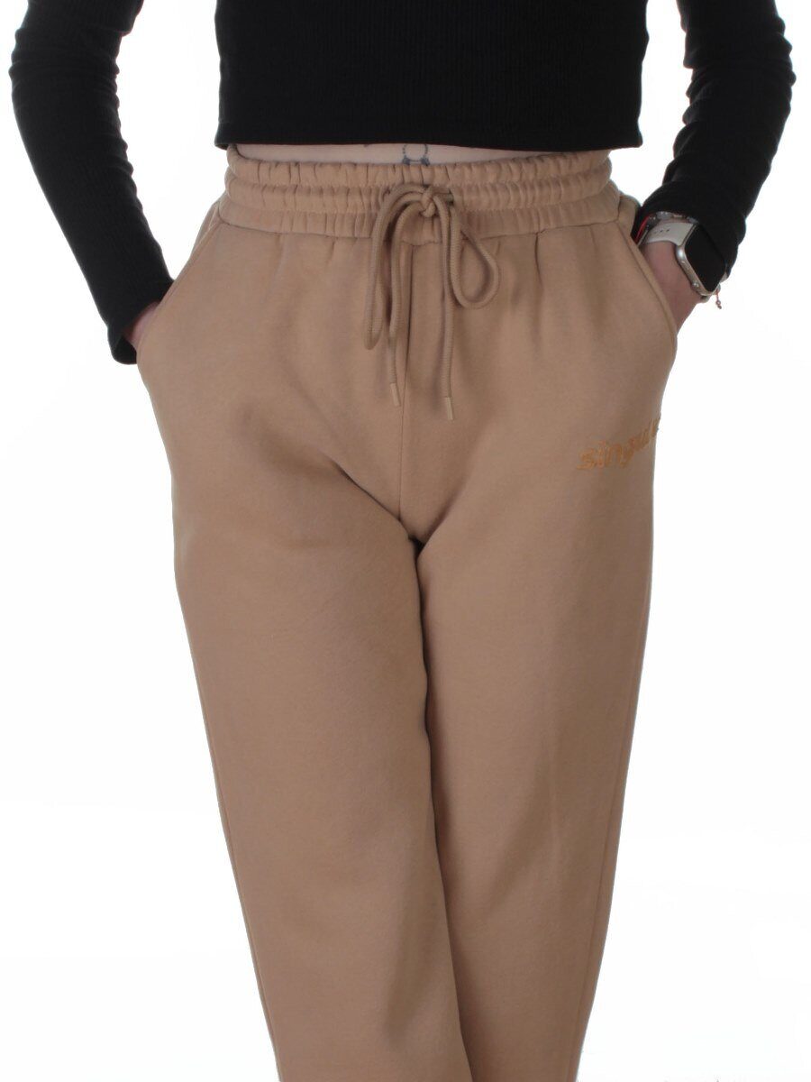 2623 BEIGE Штаны утепленные спортивные женские (85% хлопок, 10% полиэстер, 5% спандекс)