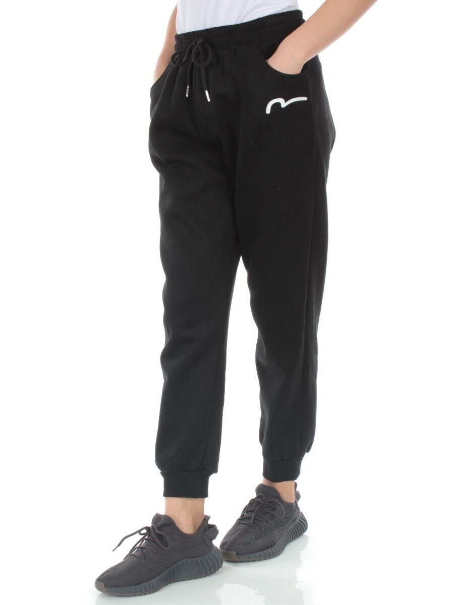 M029 BLACK Брюки спортивные утепленные женские (85% хлопок, 10% полиэстер, 5% спандекс)