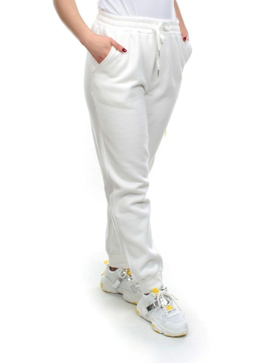 M067 WHITE Брюки спортивные женские на флисе (100% хлопок) 7986