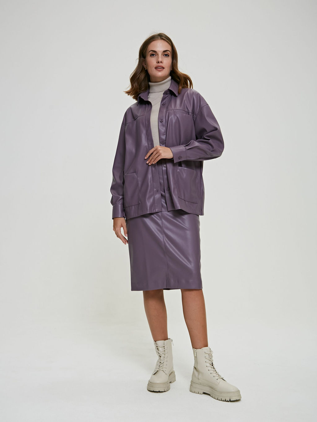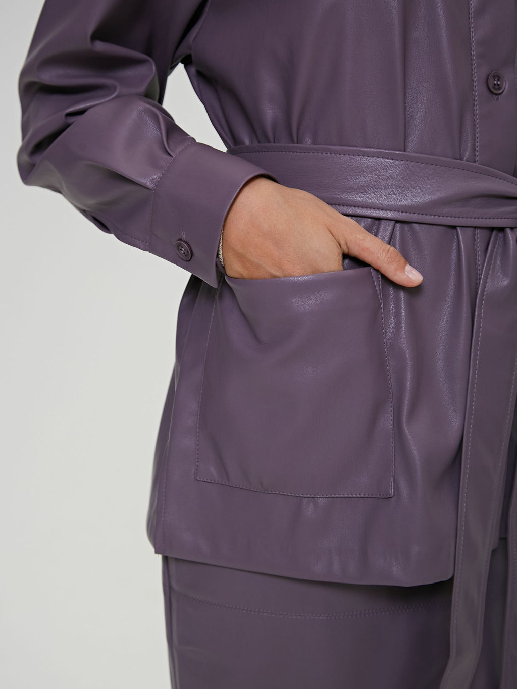 Удлиненная кожанная рубашка на поясе - идеальный вариант для прохладной осенней погоды. Рубашка с накладными боковыми карманами, отложным воротником, декоративными листочками на отрезной кокетке и шлицей по нижнему краю спинки. Длинный рукав со спущенным плечом и манжетом на пуговице. Этой осенью создавайте яркие незабываемые образы в сочетании с брюками SS 212.110107 или юбкой SS 212.060039