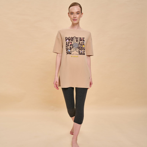Состав: 96%хлопок 4%эластанОписание: Платье женское из футера силуэта кокон с сильно опущенной линией плеча, горловиной из рибаны и устойчивым принтом из золота. По рукавам и низу изделия актуальный элемент street style открытый срез и декоративная строчка, которые придают легкость изделию. Перевод Делай больше того, что делает тебя счастливым. Новая я.