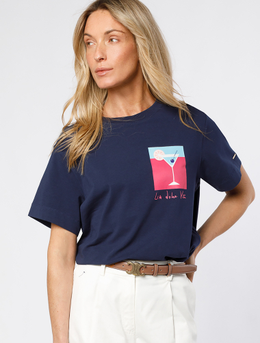 Удлиненная футболка over-size с авторским принтом Футболка свободного кроя выполнена из премиального хлопка. Авторский принт нанесен красками с устойчивым покрытием. Перевод: «Collect moments - Копи моменты» Наличие эластана в составе гарантирует абсолютный комфорт и долговечность изделия. Модель дополнена металлическим логотипом бренда.