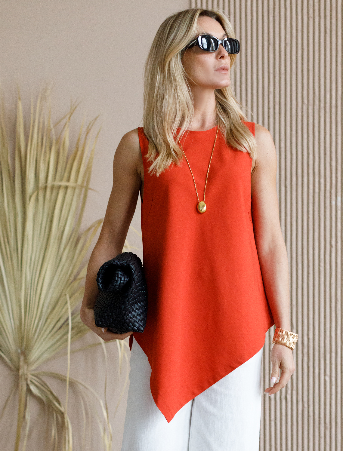 Удлиненный топ из плотного лиоцелла Топ выполнен из плотного лиоцелла. Удлиненная модель с трендовым ассиметричным низом. Ткань изделия отлично держит форму, плавно драпируется и не просвечивает. В теплое время года приятно охлаждает кожу. Добавление синтетических волокон в составе изделия, предотвращает сминаемостьи поддерживает формоустойчивость. Топ сочетается в костюме с брюками D24.261, D24.265, D24.267, юбкой D24.261, шортами D28.057, а также очень эффектно с белыми шортами и джинсами.
