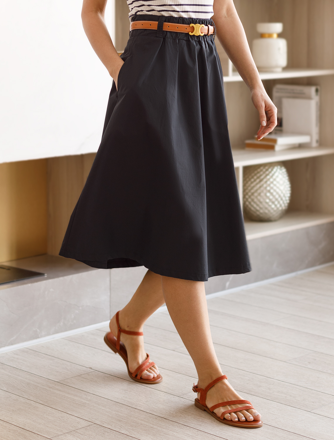 Юбка на широкой резинке с карманами из плотного поплина Юбка выполнена из плотного поплина. Удобный пояс на широкой резинке подчеркивает талию при этом не сковывая движений. Модель дополнена удобными карманами по бокам. Материал изделия прочный и износостойкий, но при этом мягкий и удобный, отлично держит форму и подходит для повседневной носки, гарантируя абсолютный комфорт даже в жаркое время года. Без подкладки